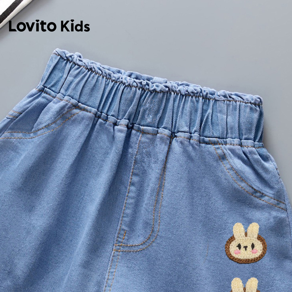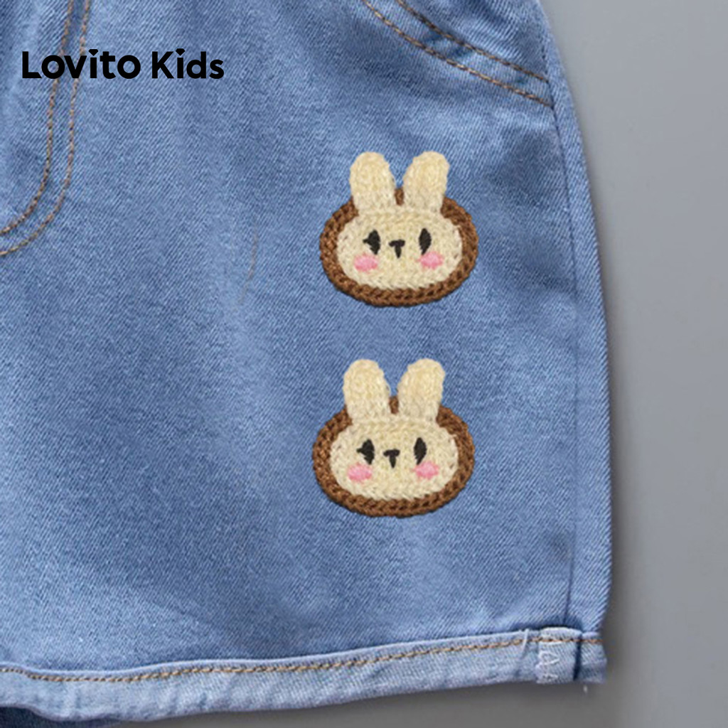 Lovito Kids Shorts Casuais Apliques Primavera/verão Shorts Azul Claro para Menina. LNL132253