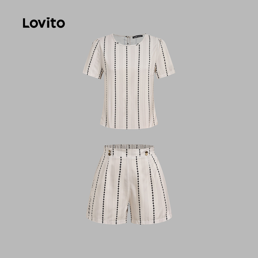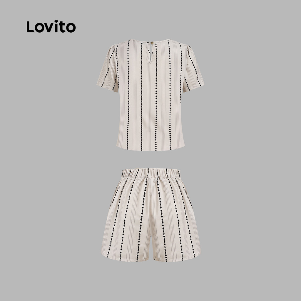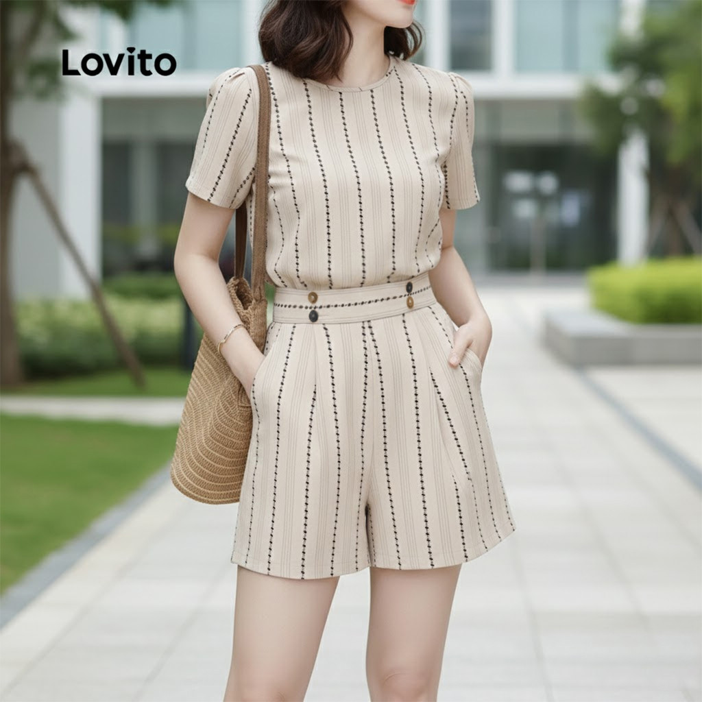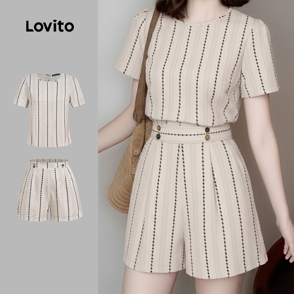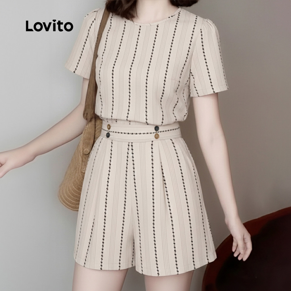 Lovito Conjuntos de Shorts Casuais Botão Primavera/verão Conjuntos de Shorts Cáqui para Mulheres L171ED408