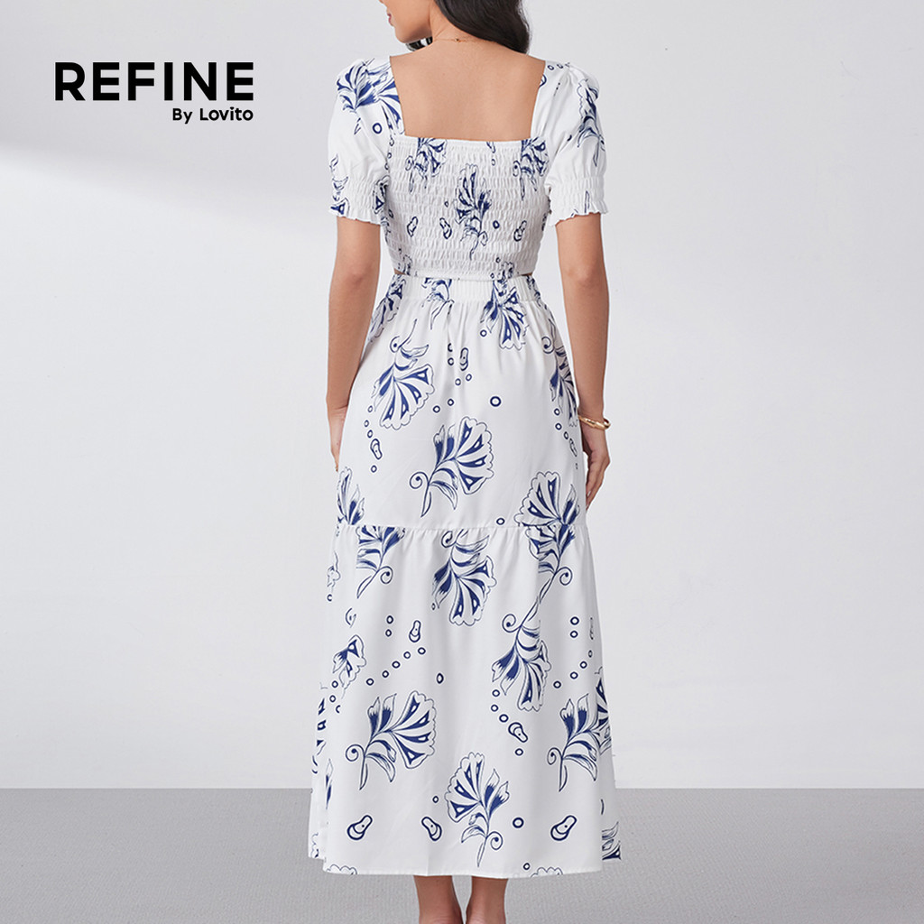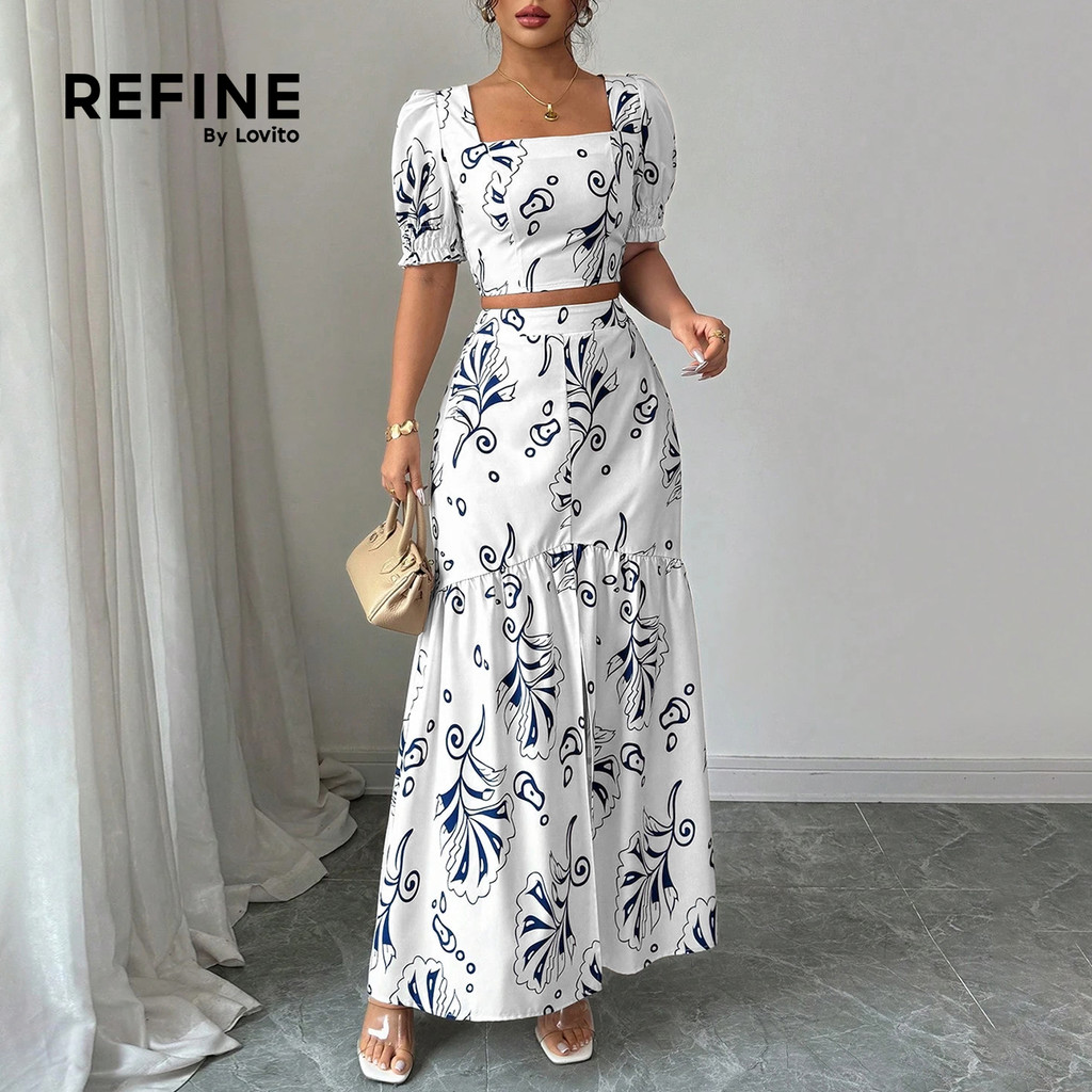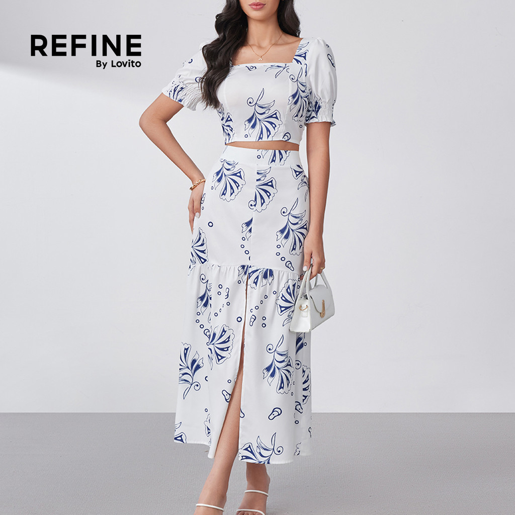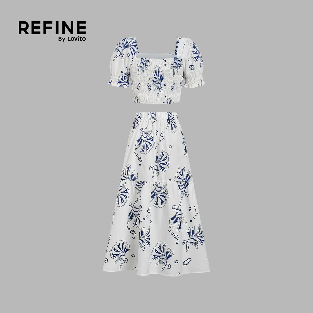 (Lovito Refine) Tops ou Bottoms Elegantes Smocked com Fenda Estrutura Linha Primavera/verão para Mulheres LR32L007