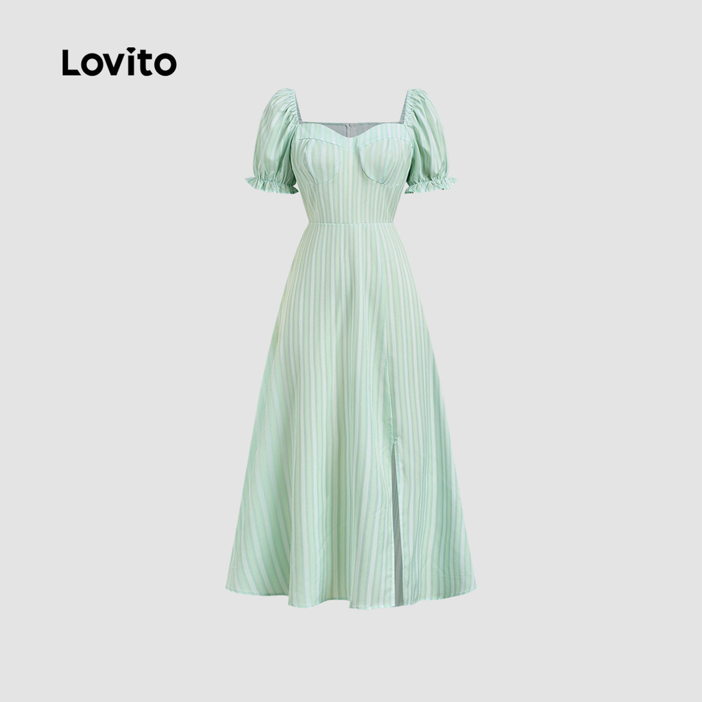 Lovito Vestido Elegante com Zíper Dividido Primavera/verão Verde para Mulheres LBL32215
