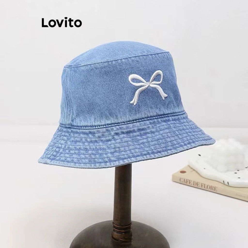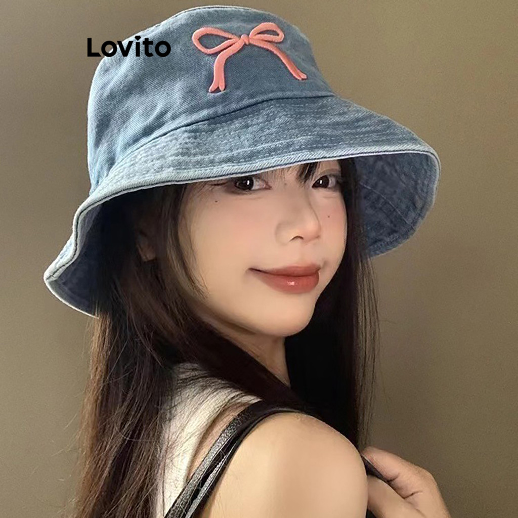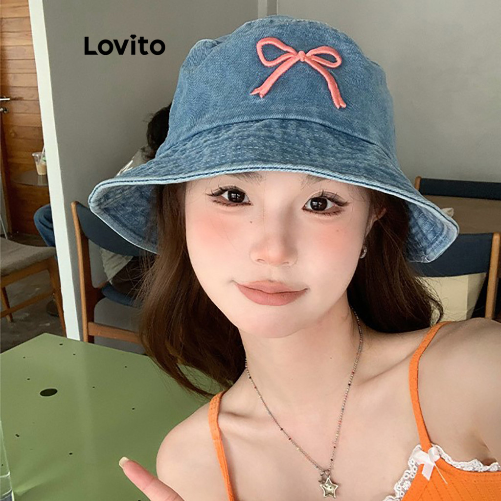 Lovito Chapéu Feminino Casual Estilo Arco Versátil Jeans Para Verão LFA55209