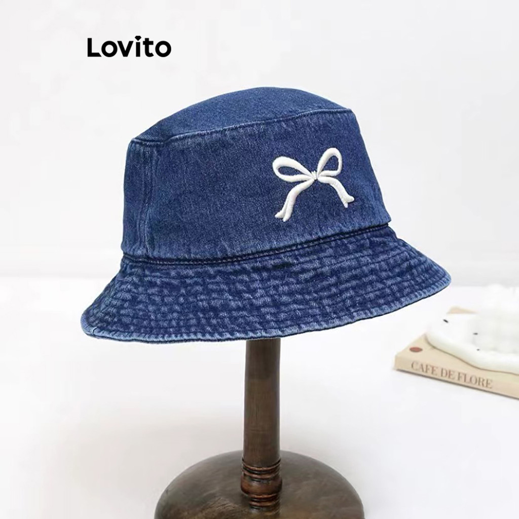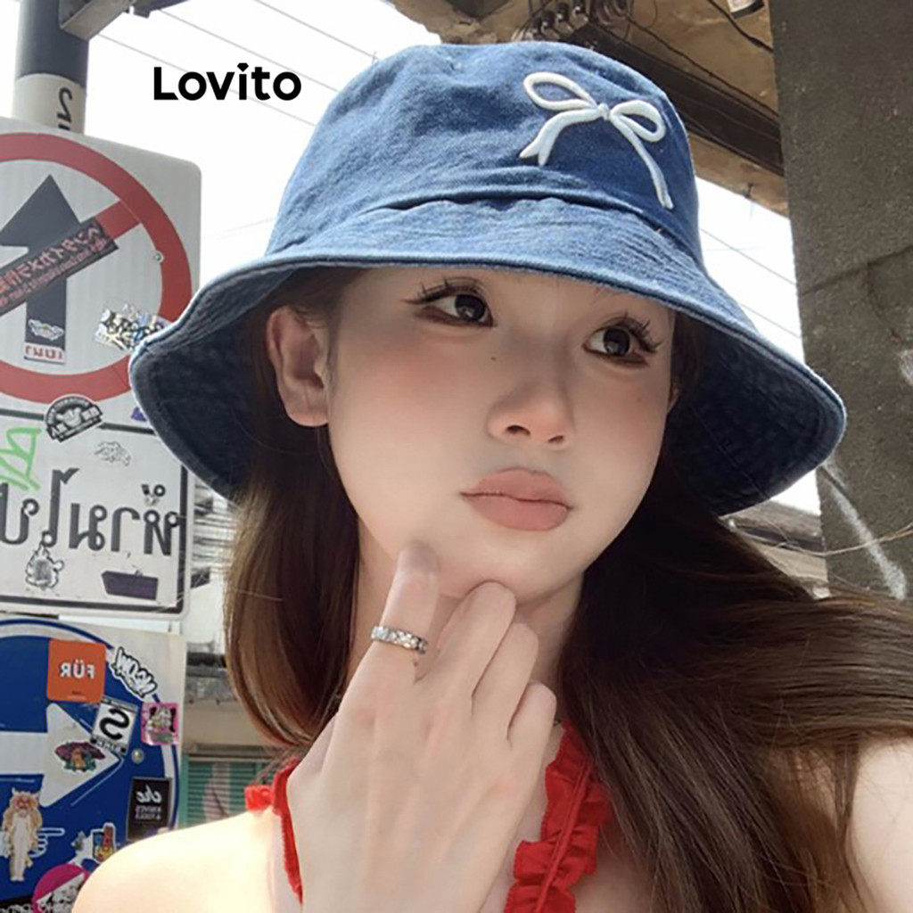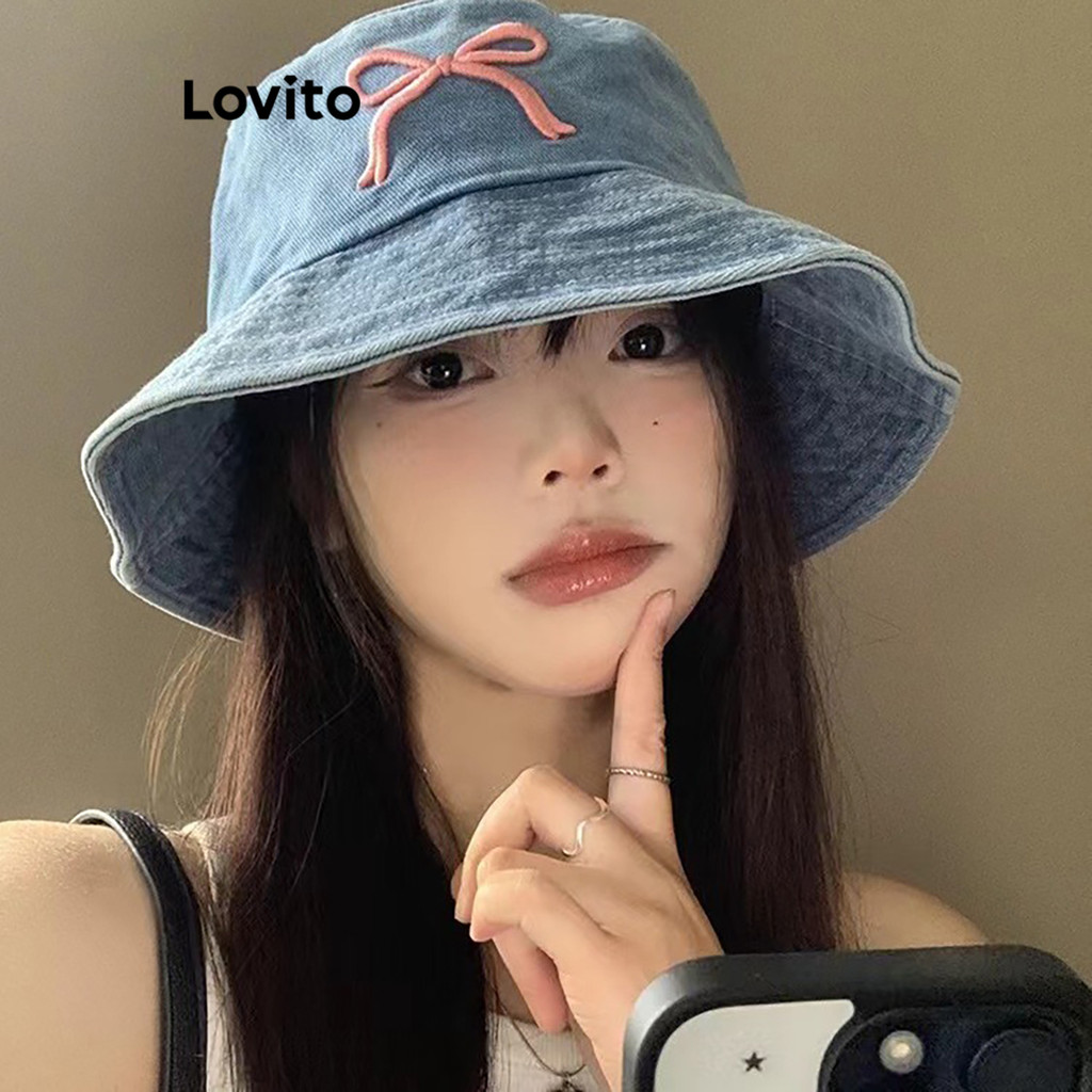 Lovito Chapéu Feminino Casual Estilo Arco Versátil Jeans Para Verão LFA55209