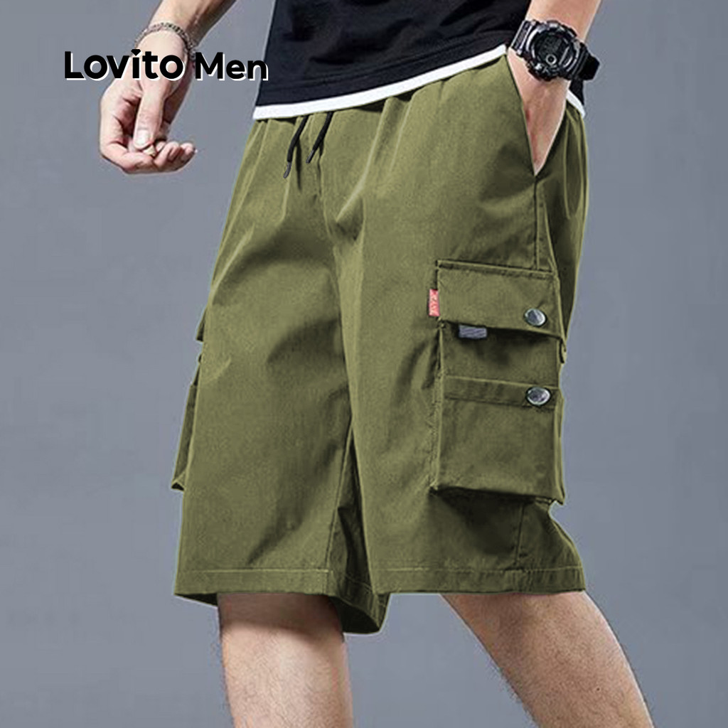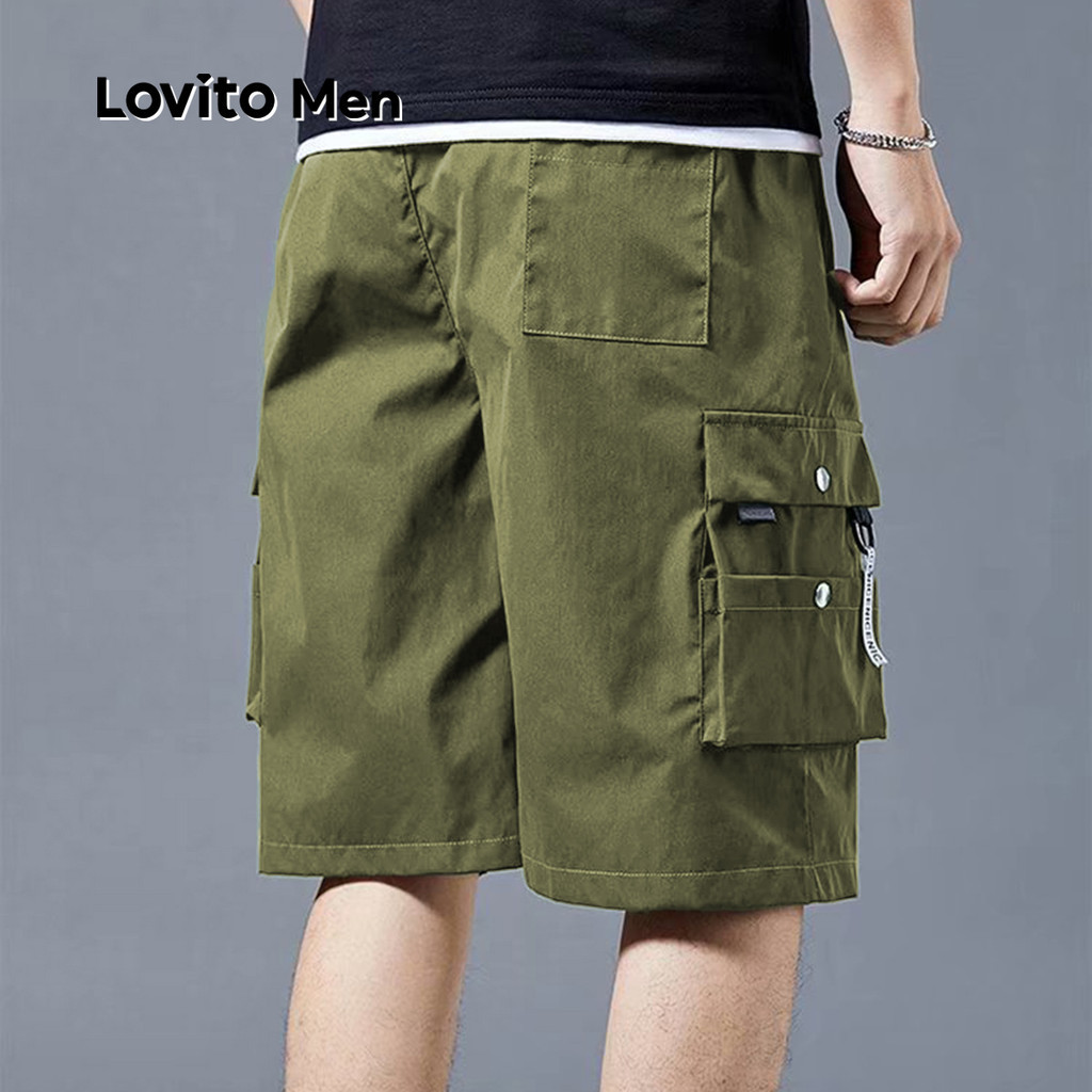 Lovito Shorts Casuais Masculinos Clássicos E Versáteis Com Bolso Na Cor Verde Militar Para Primavera/verão LNE122154