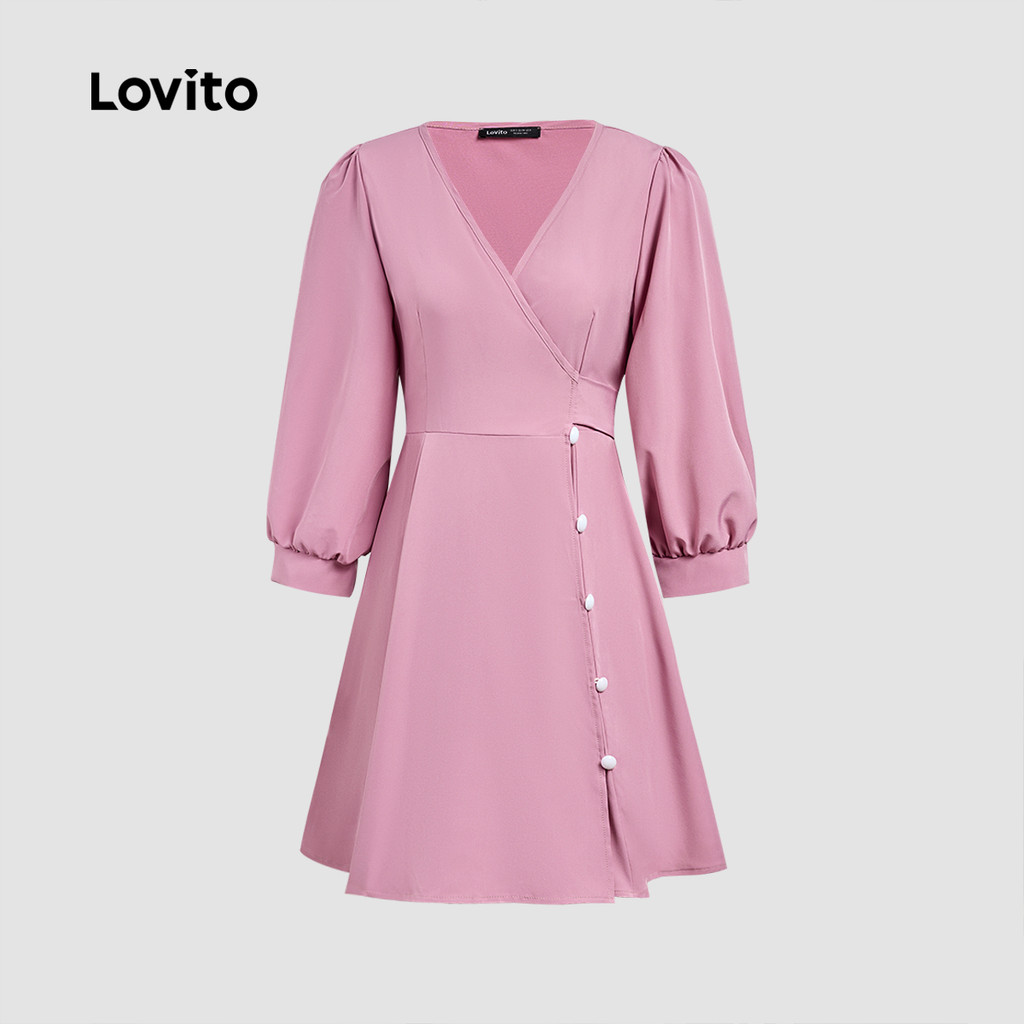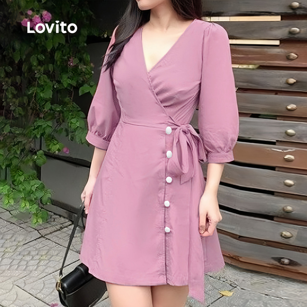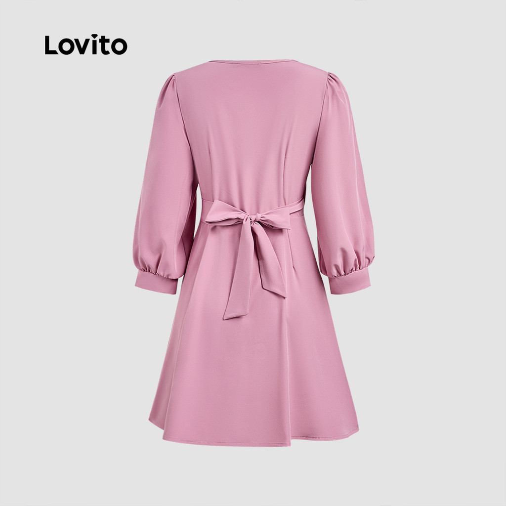 Lovito Vestido Sofisticado com Laço Frontal em Cinza e Rosa para Mulheres L158ED990