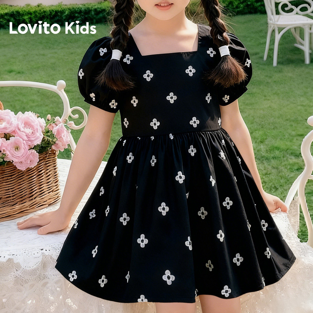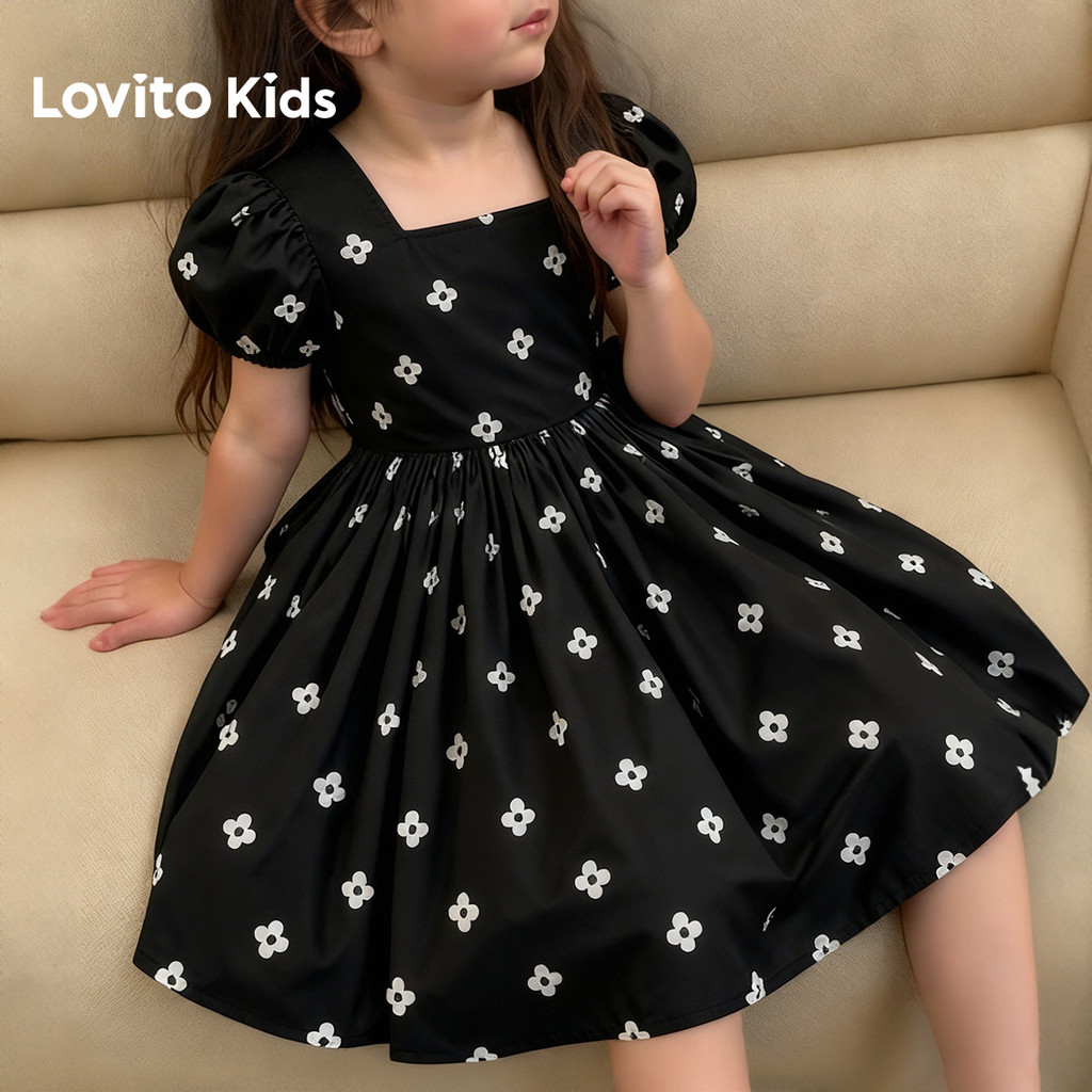 Lovito Kids Vestido Casual Babado Primavera/verão Preto para Menina L168LD183