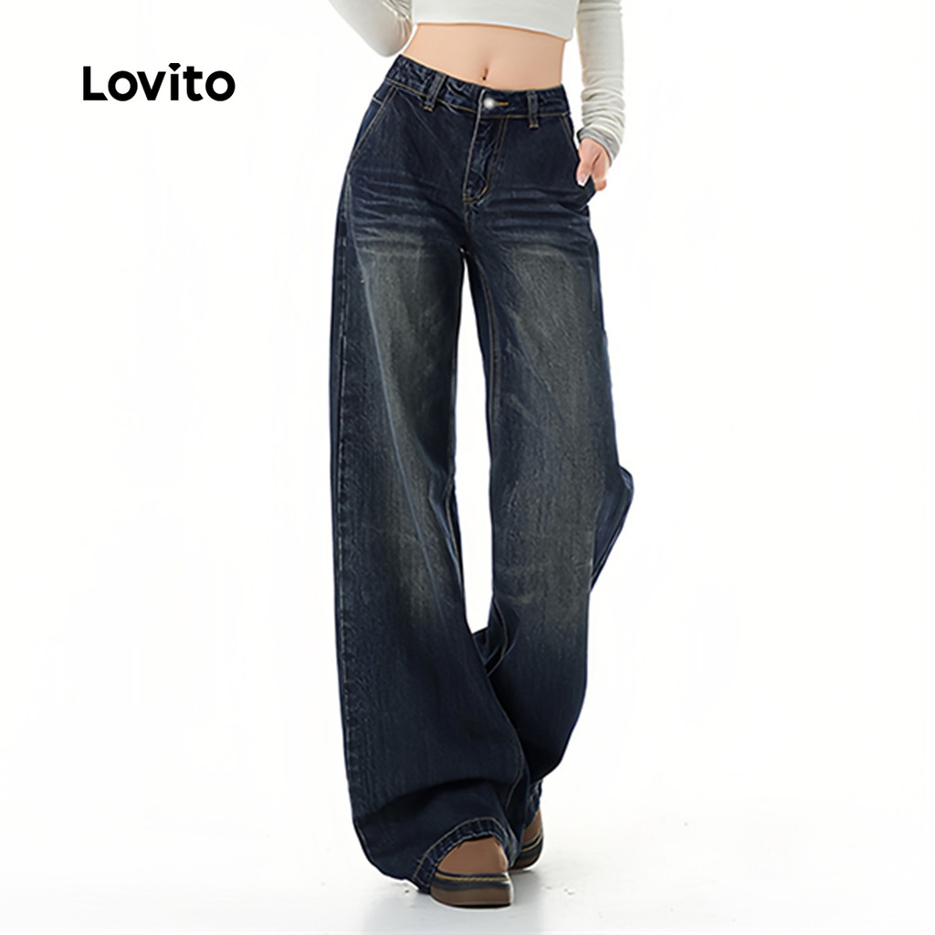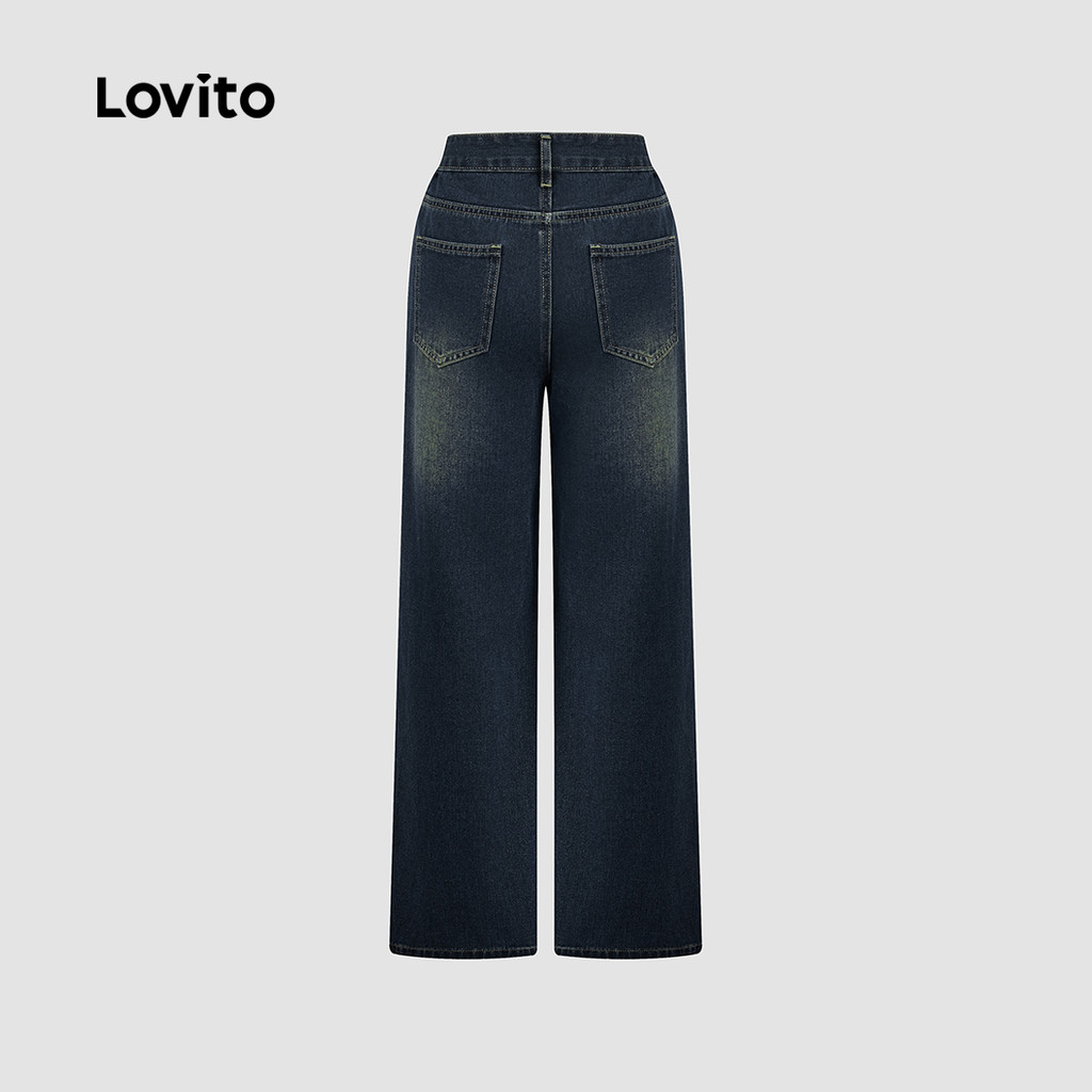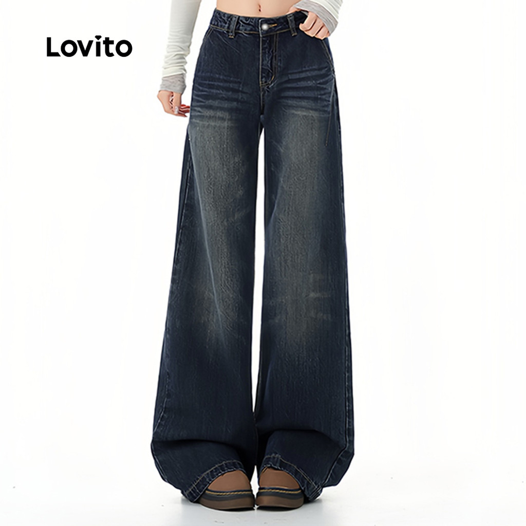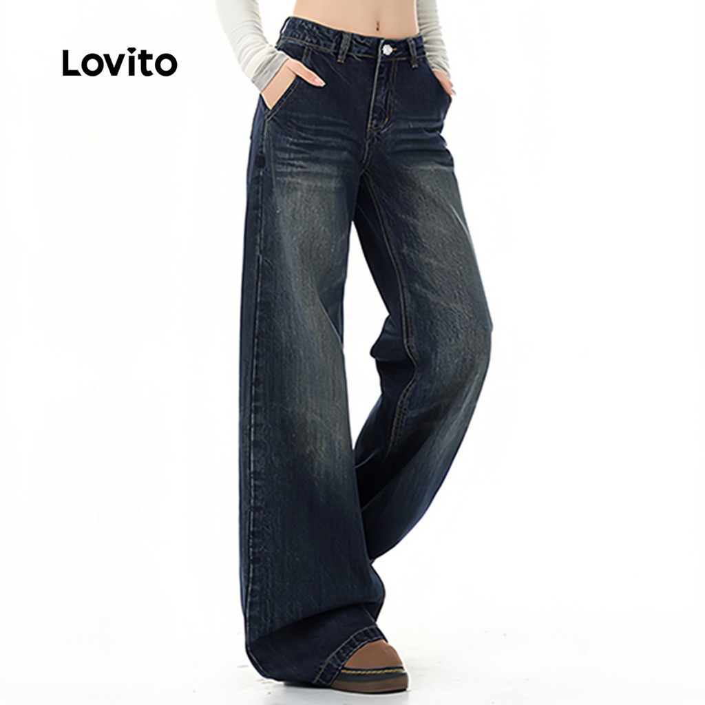 Lovito Jeans Casuais Lavados Azul para Mulheres L166AD1036