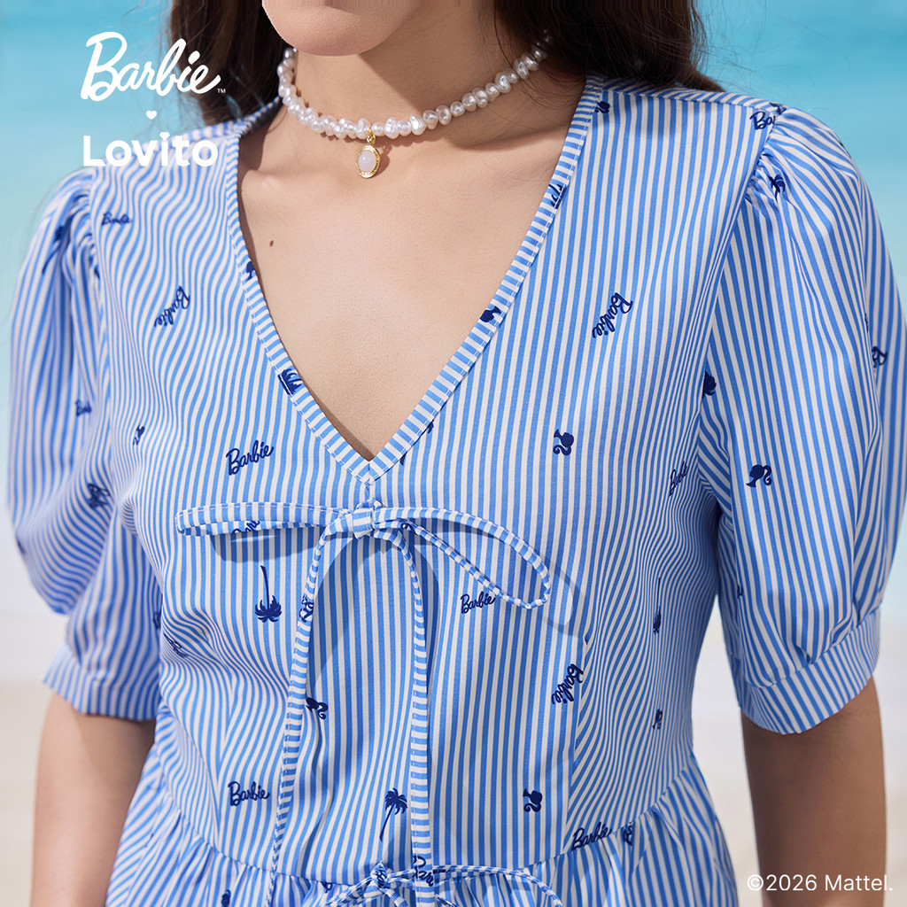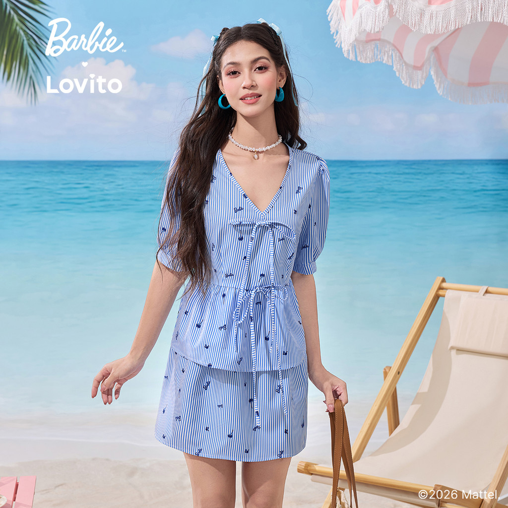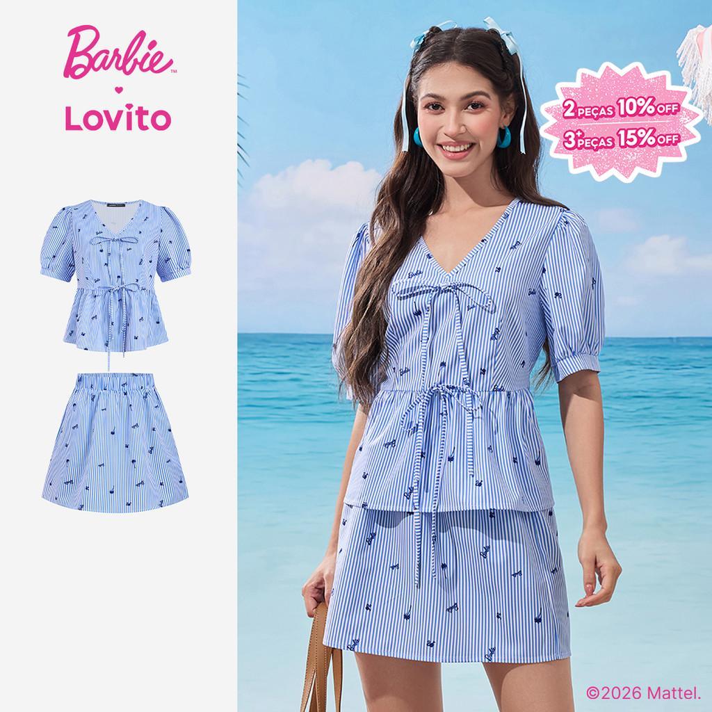 Barbie™ X Lovito Camisas ou Calças Casuais Amarrar Frontal Camisas ou Calças para Primavera/verão para Mulheres LB1AD046