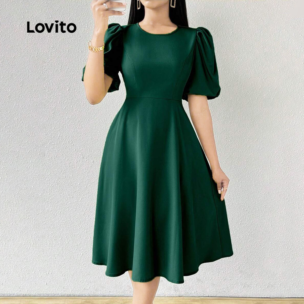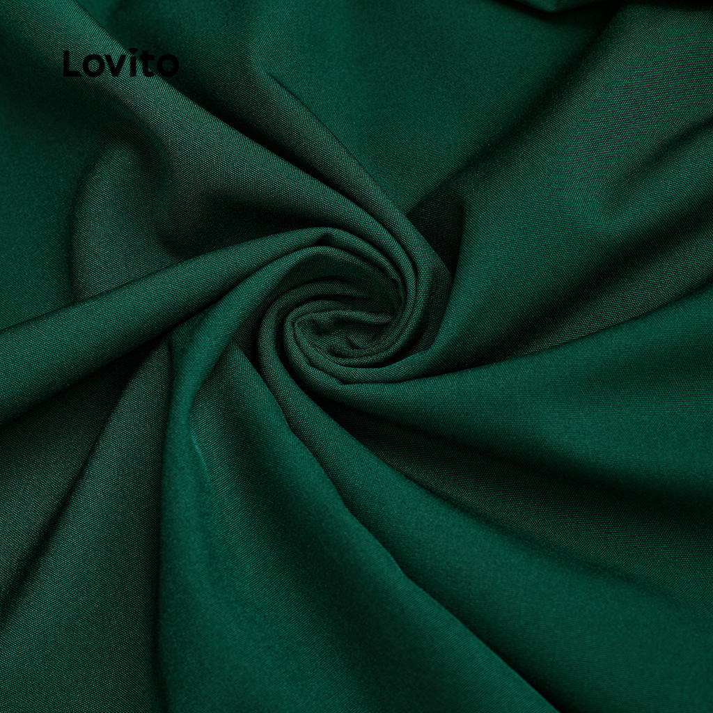 Lovito Estrutura de Vestido Elegante Linha de Vestido Primavera/verão Verde Escuro para mulheres L155AD1722