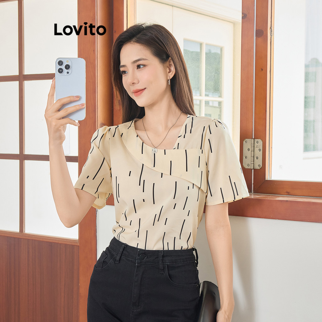 Lovito Blusa Assimétrica Listrada Casual Para Mulheres L104ED240