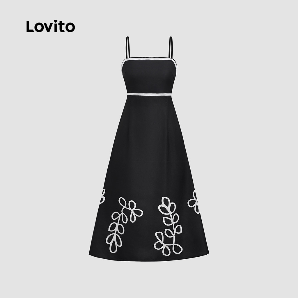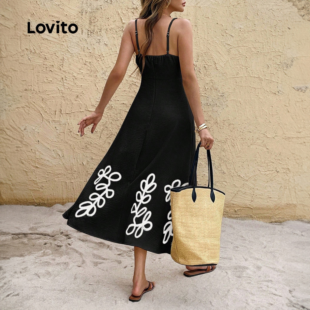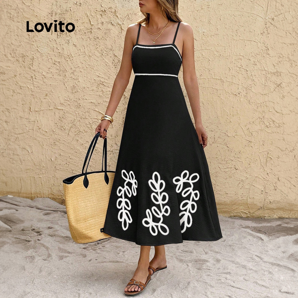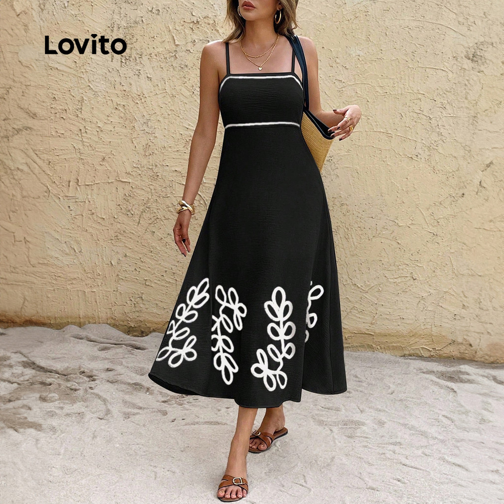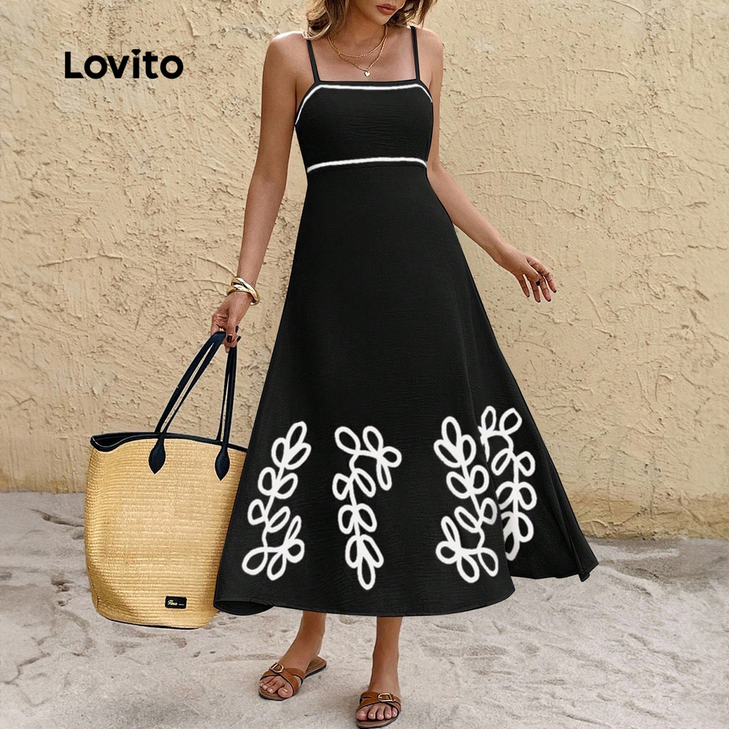 Lovito Vestido Boho Estilo Resort Contraste Guarnição Primavera/verão Preto Vestido para Mulheres LBL31155