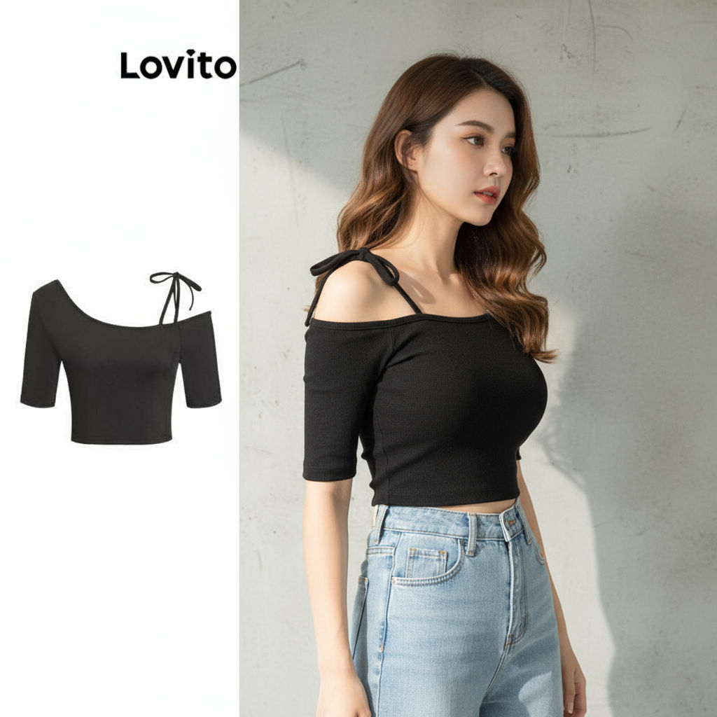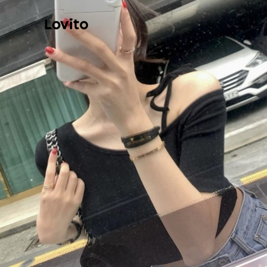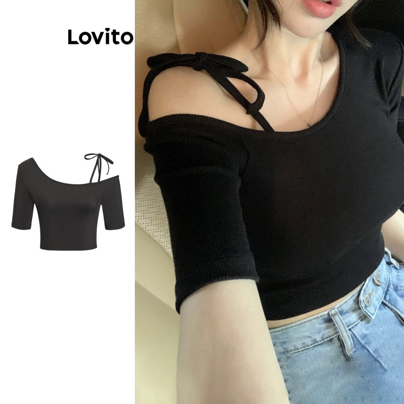 Lovito Blusa Feminina Casual Simples Com Amarração L100MD156