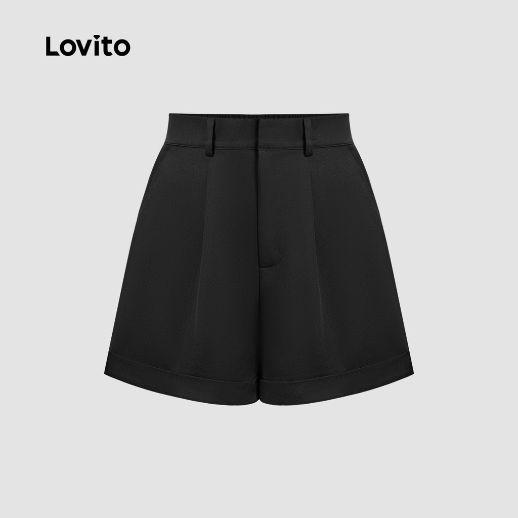Lovito Short Feminino Casual Plissado Verão/Primavera L177AD709