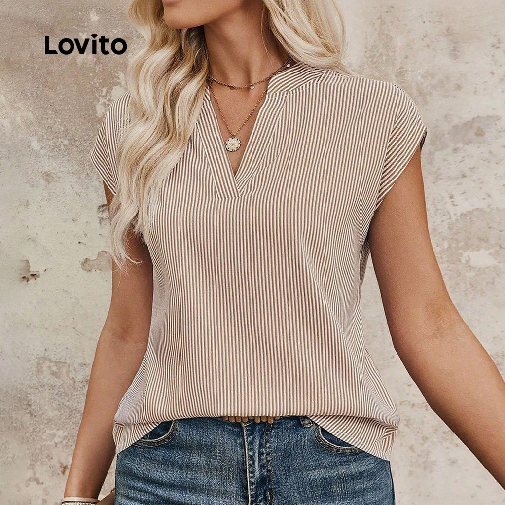 Lovito Blusa Casual Listrada Básica Marrom Primavera/Verão para Mulheres LBL32261