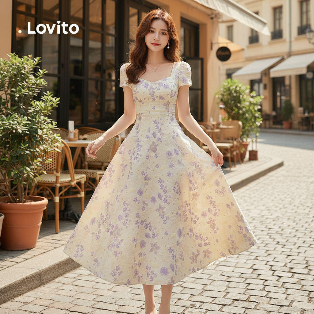 Lovito Vestido Elegante Natalino Com Zíper, Tecido Macio, Primavera/verão, Feminino L145LD065