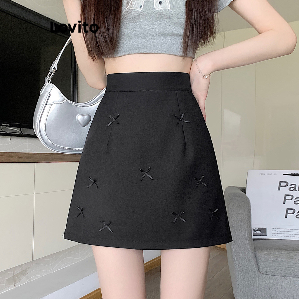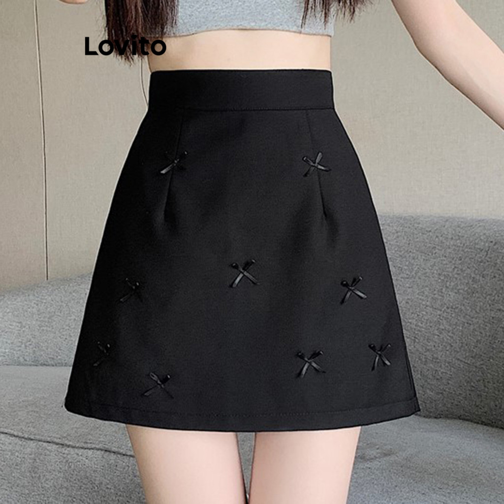 Lovito Saias Casuais Saia Feminina de Laço Lisa LNA68205