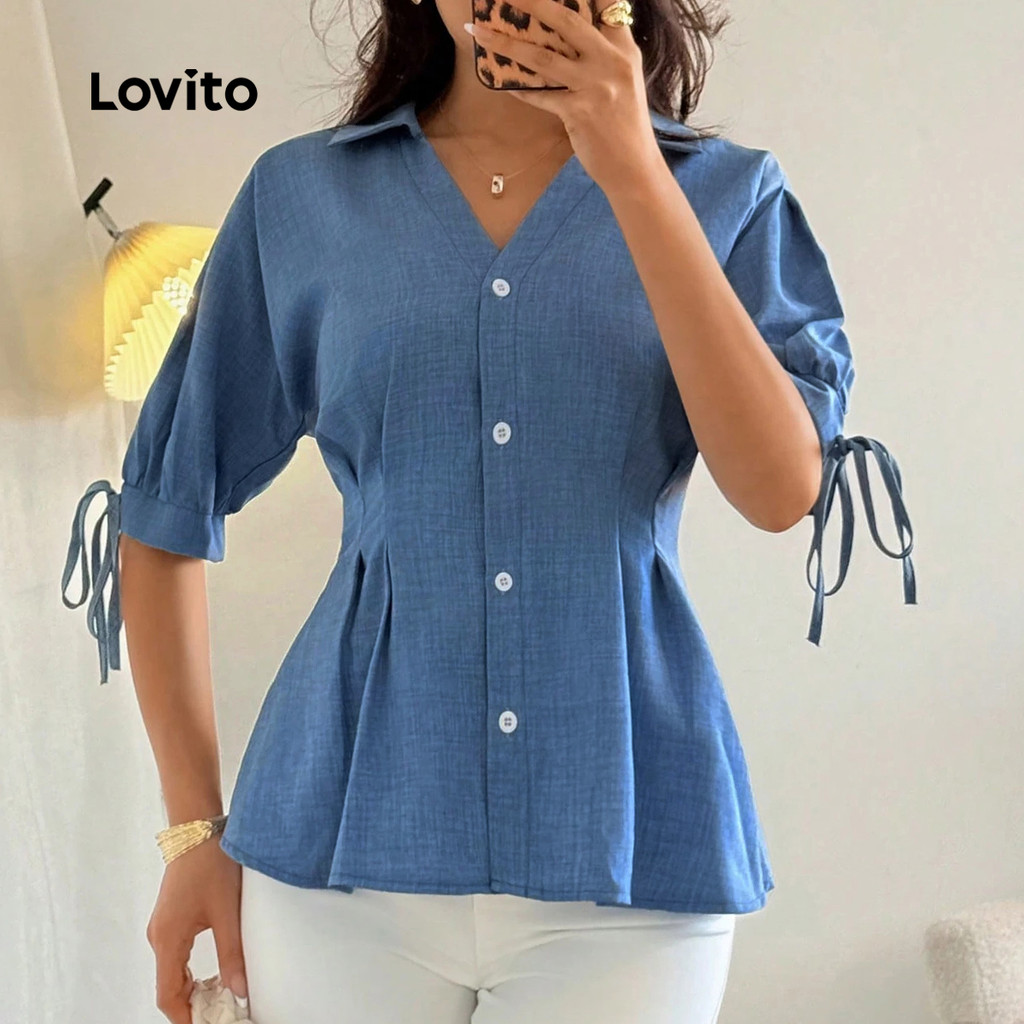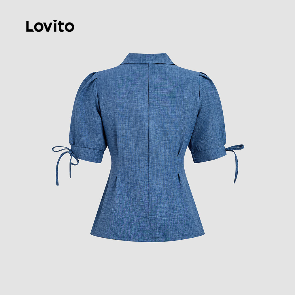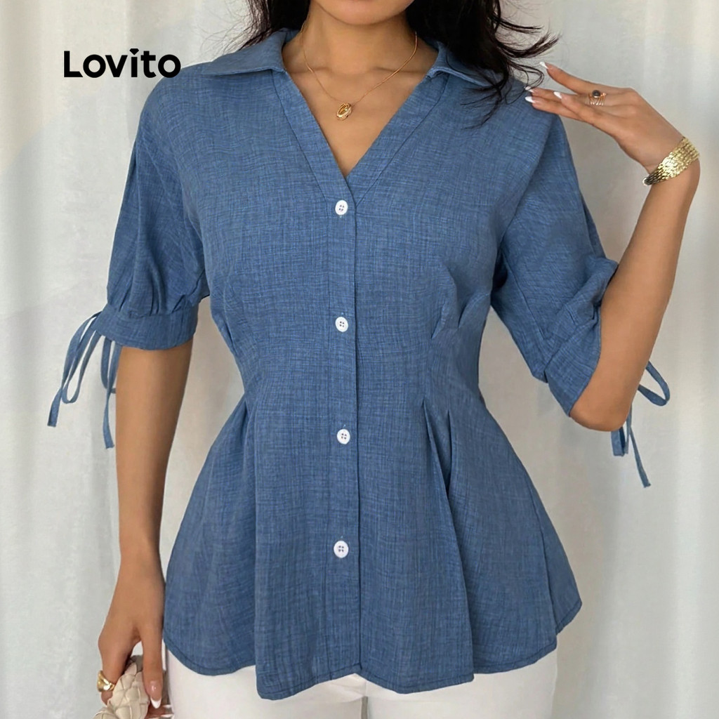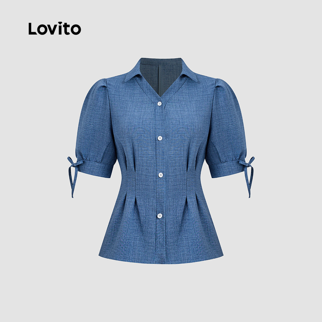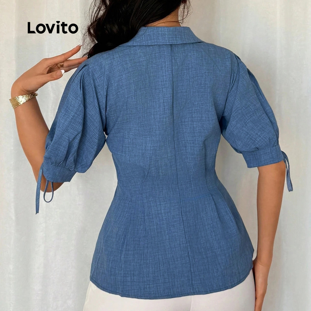 Lovito Blusa Casual Botão Primavera/verão Blusa Azul para mulheres LK2LD433