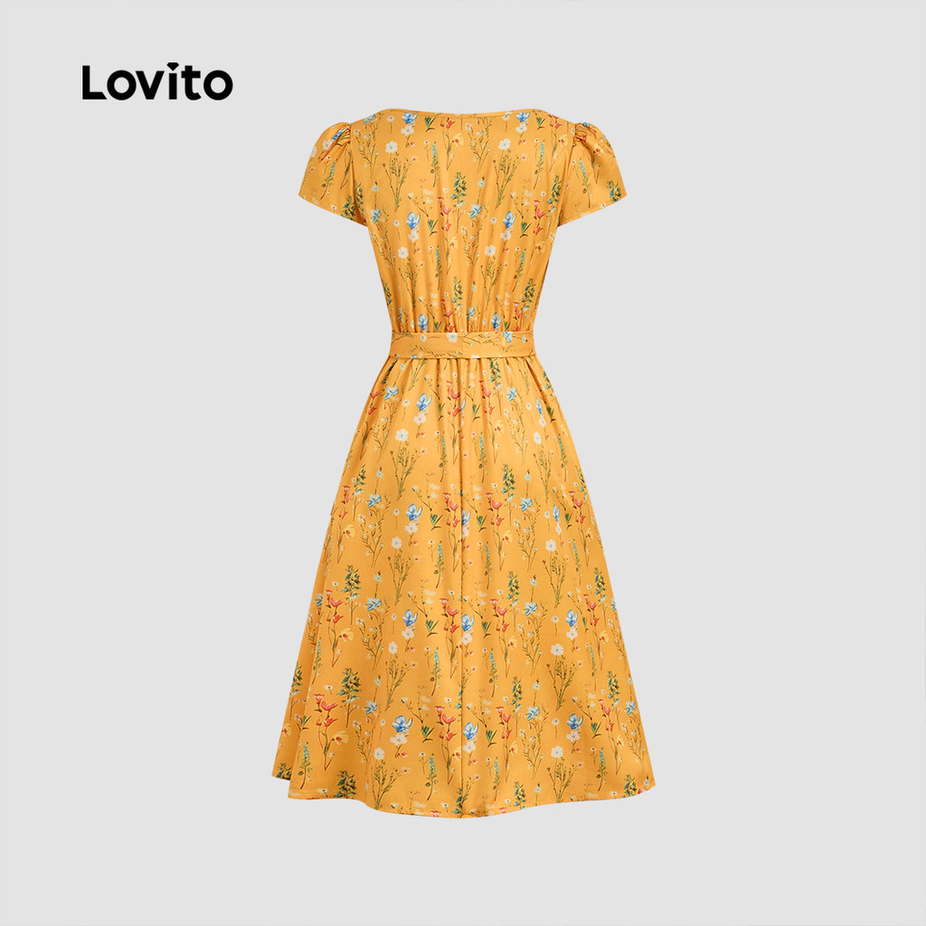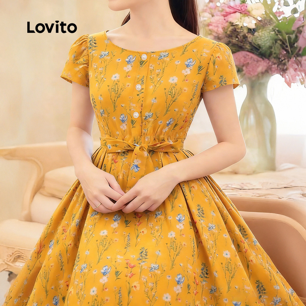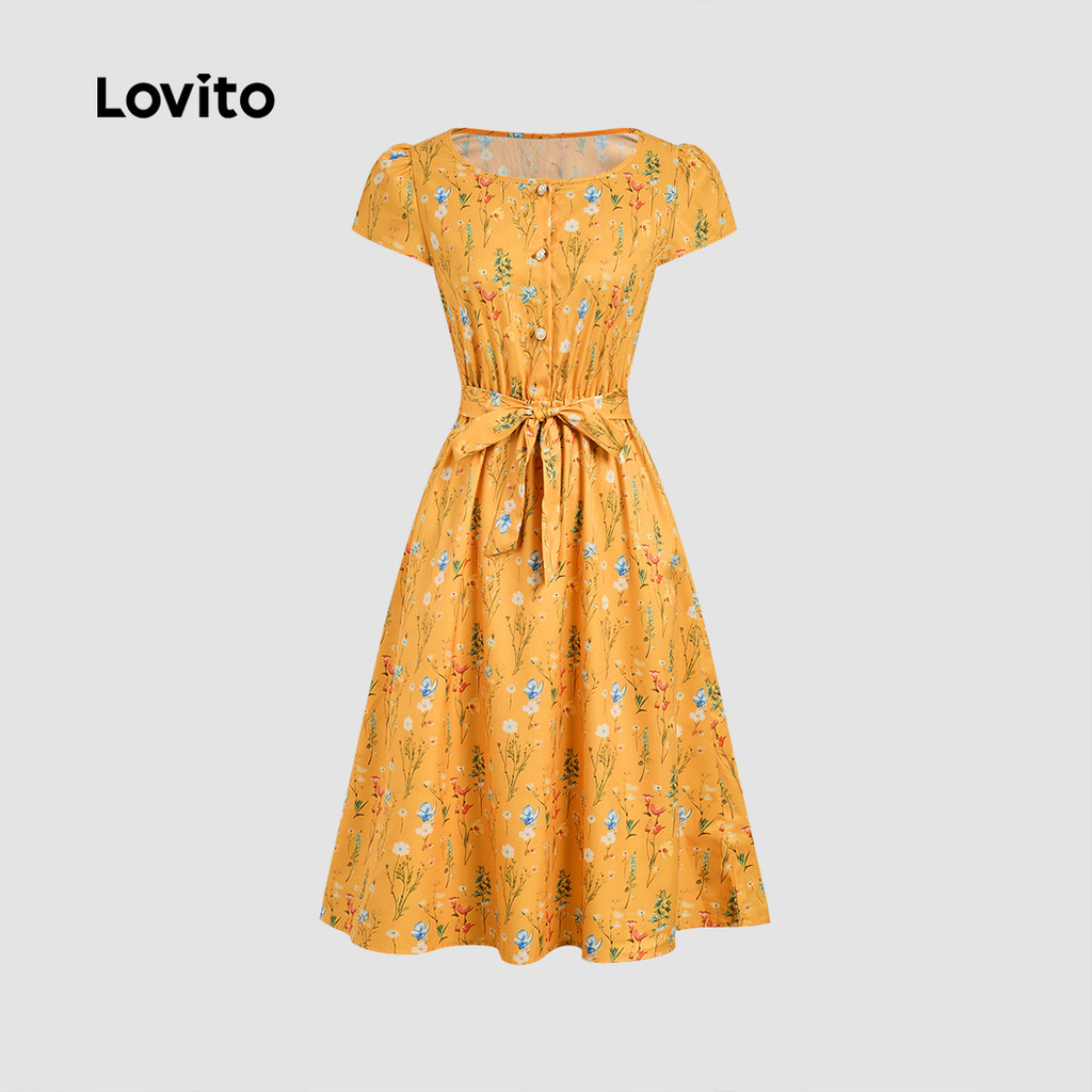 Lovito Vestido Casual Feminino de Primavera/verão com Botão Frontal e cinto LBL34085