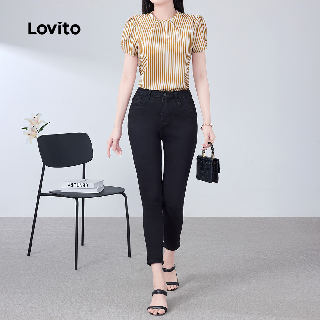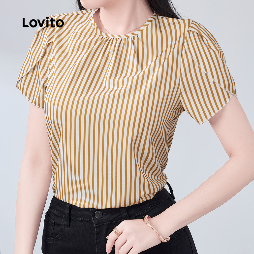 Lovito Blusa Elegante Plissada Primavera/verão Blusa Cáqui para Mulheres L172ED007