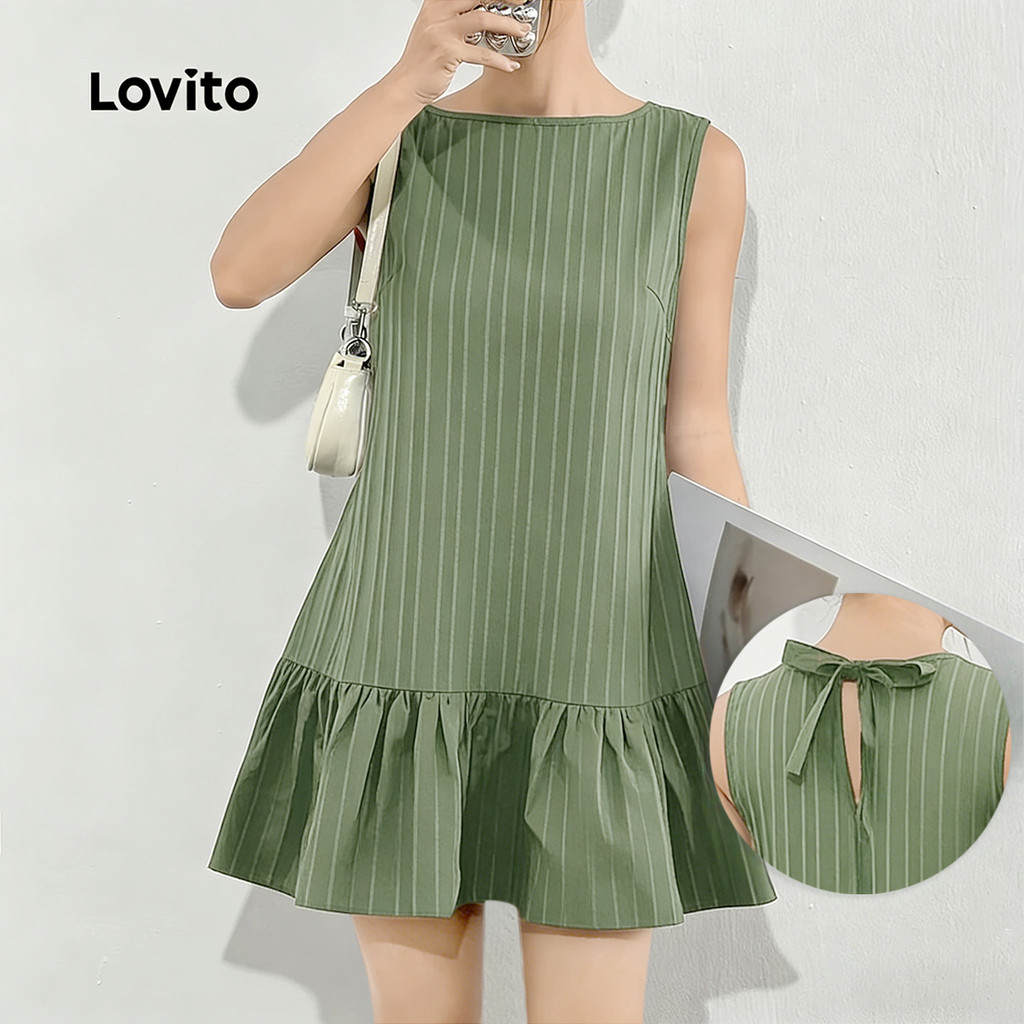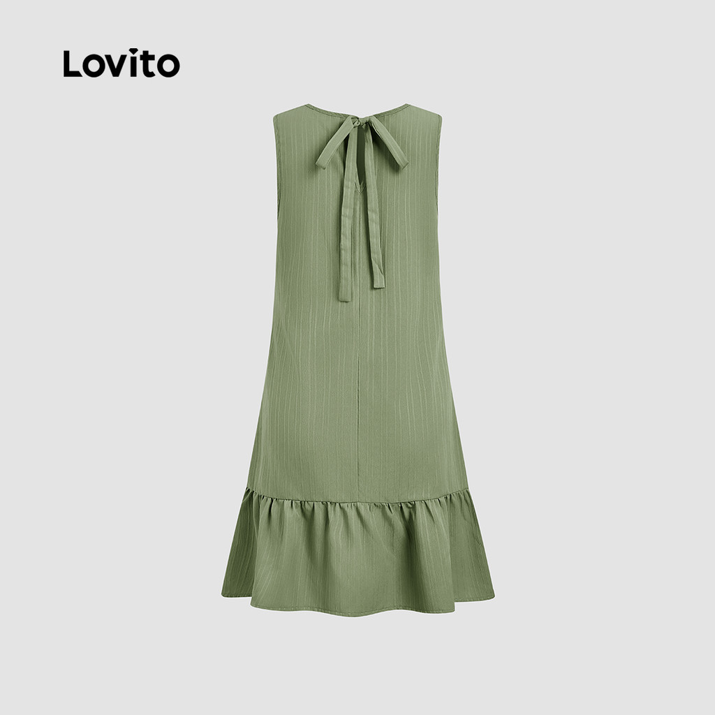 Lovito Vestido Casual Plissado com Primavera/verão Verde Exército para Mulheres L177ED095