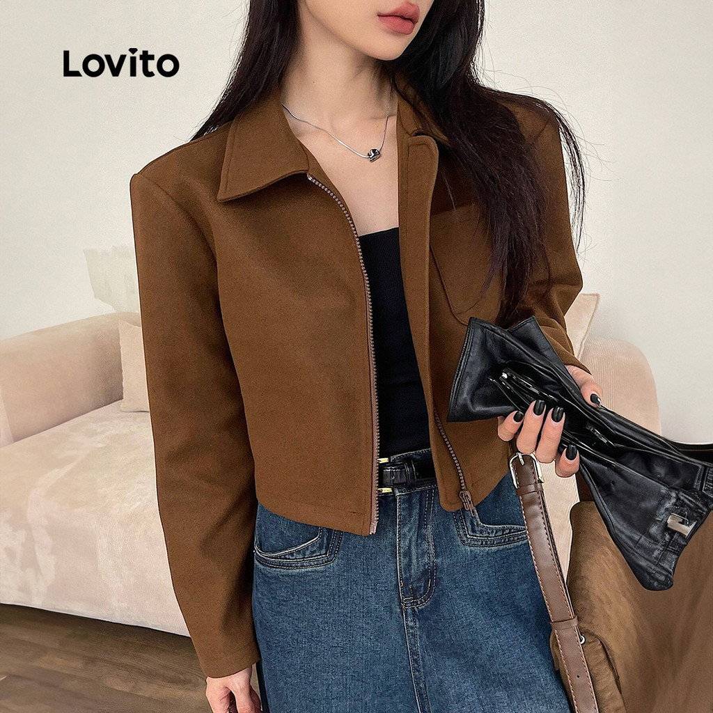 Lovito Casaco Feminino Casual Com Fecho E Bolsos Decorativos Para Outono Inverno LBL24450\5