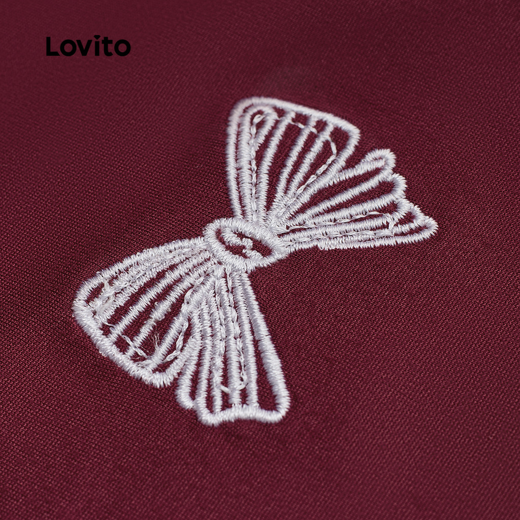 Lovito Blusa Feminina Bordada Primavera Verão Claret Casual L154ED016