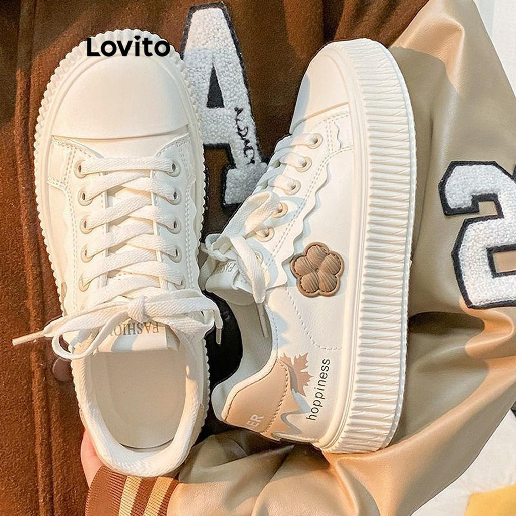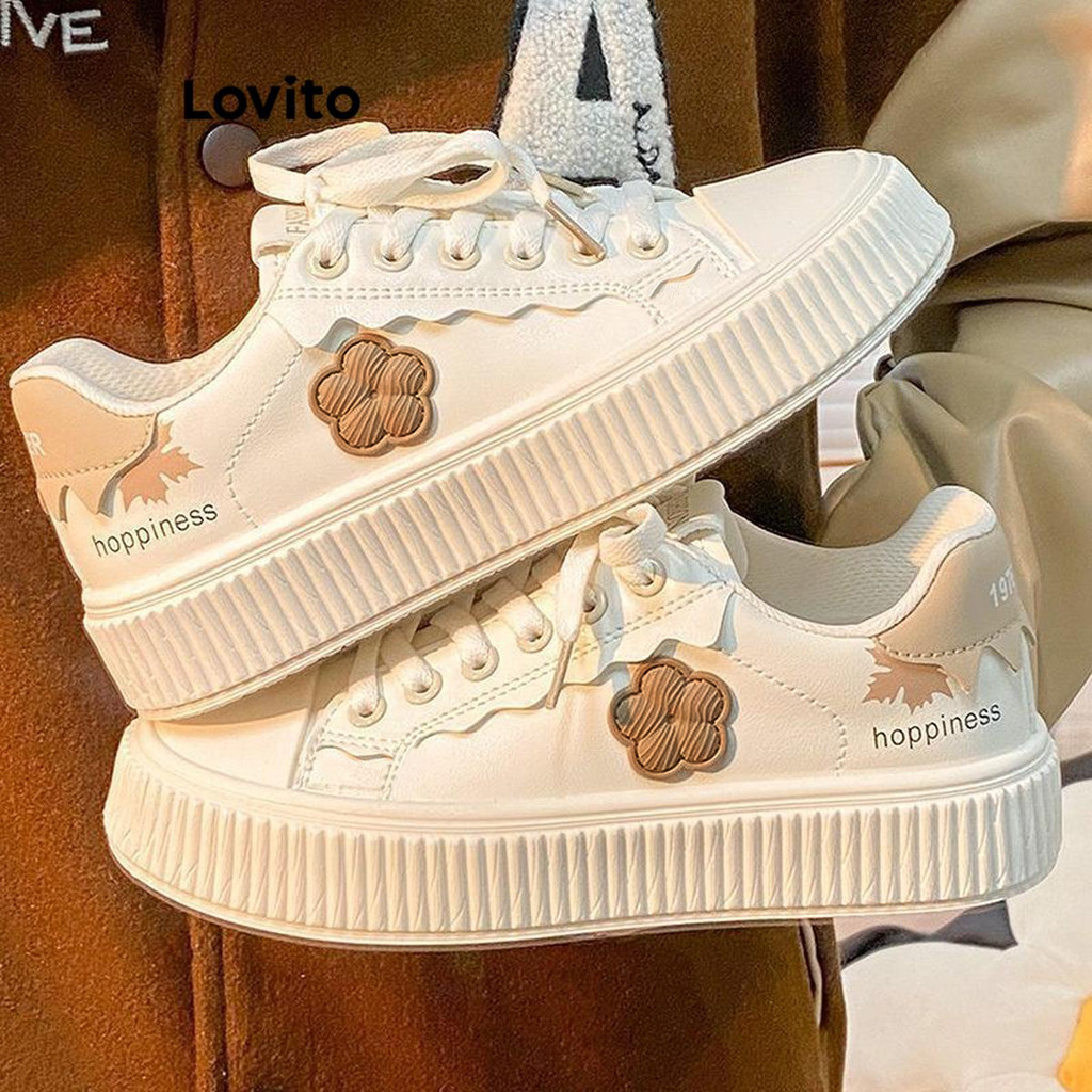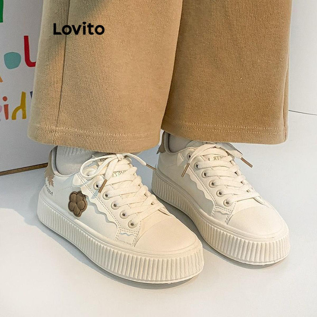 Lovito Tênis feminino casual com apliques florais lisos LFA41332