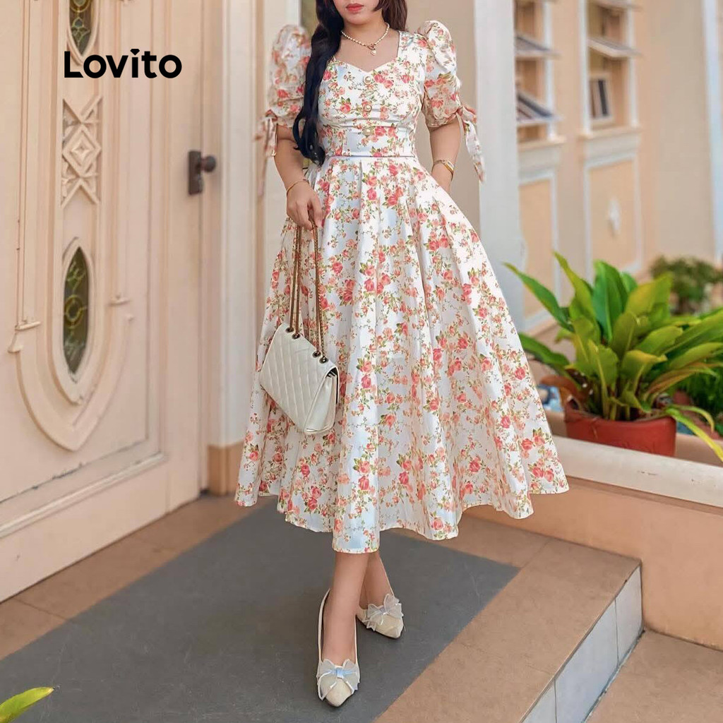 Lovito Vestido com Zíper Casual Feminino para Primavera Verão LK2LD320
