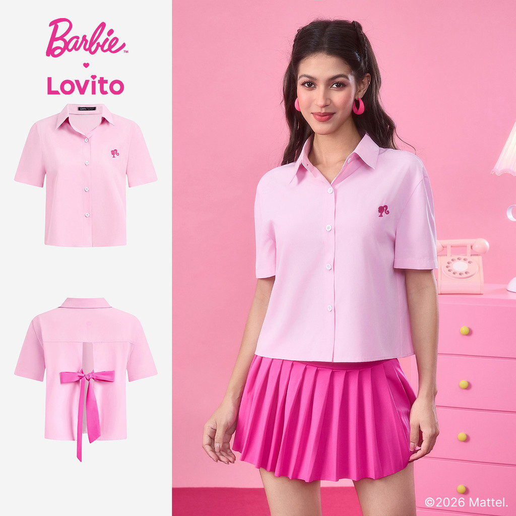 Barbie™ X Lovito Blusa Casual Botão Primavera/verão Blusa Rosa para mulheres LB1AD022