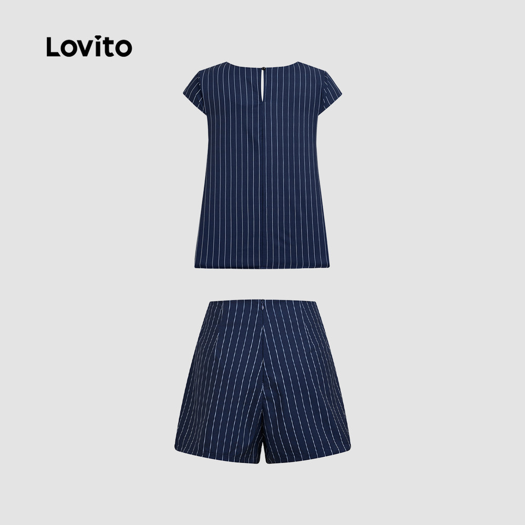 Lovito Tops ou Bottoms Casuais Altos Baixos Lazer Terno Azul Marinho Tops ou Bottoms para Mulheres. L177AD153