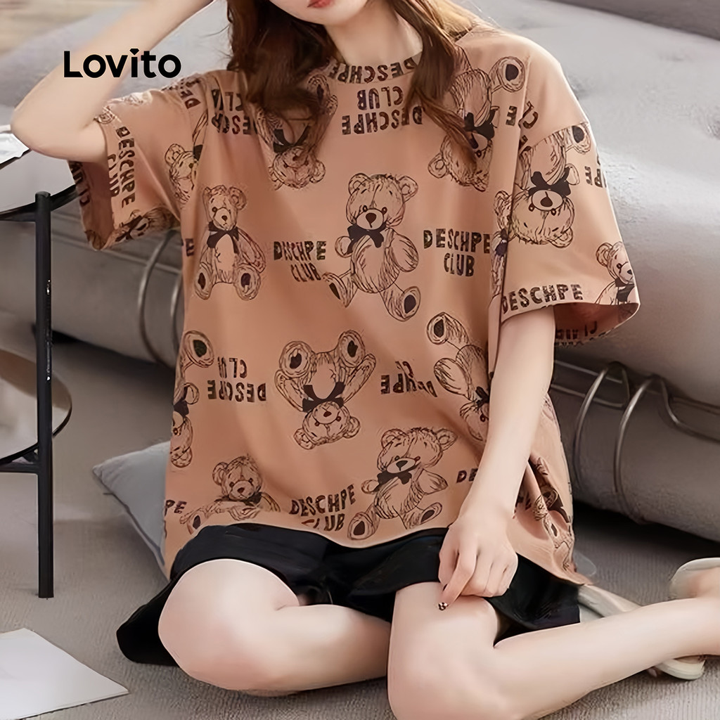 Lovito Conjunto Pijama 2 Peças Bloco Cor Nuvem Estudantil Roupa Casa Feminina LNE134X006