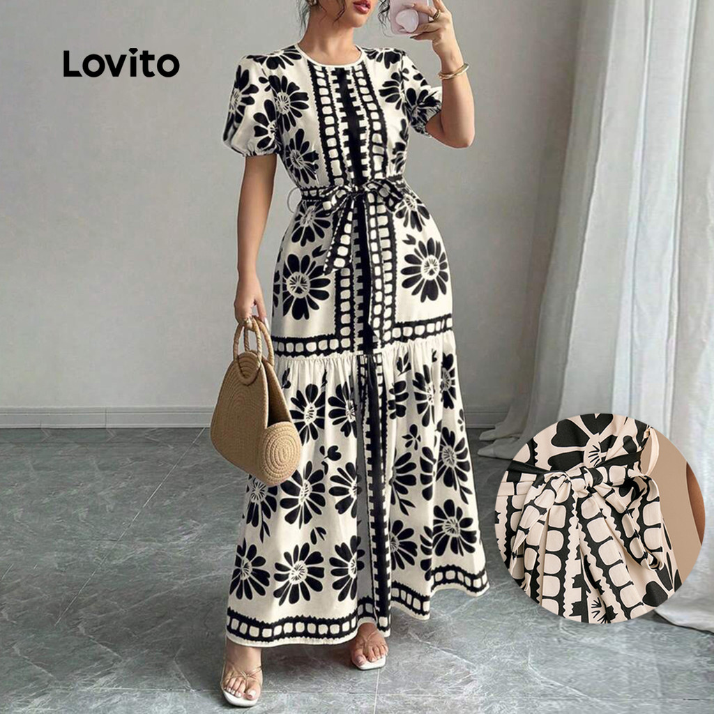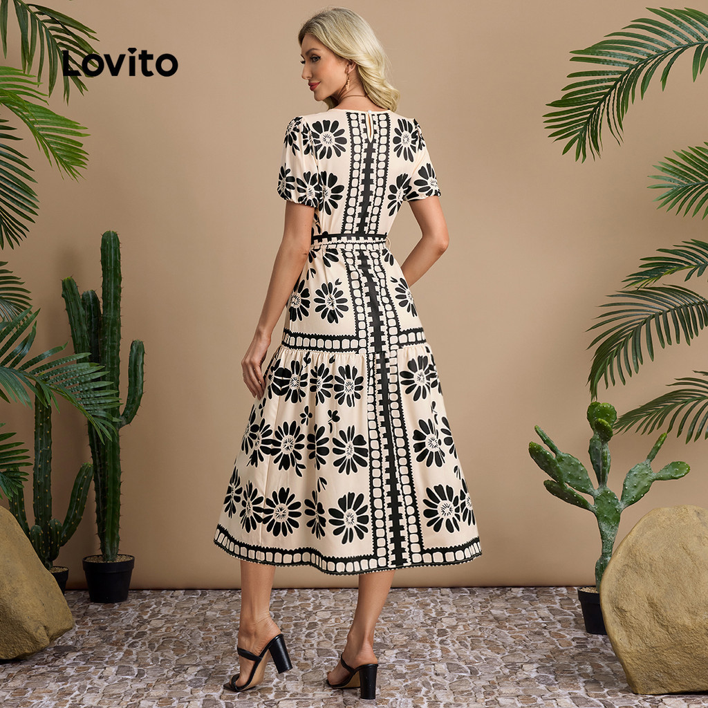 Lovito Vestido Casual com Zíper para Primavera/verão Preto para Mulheres LBL30272
