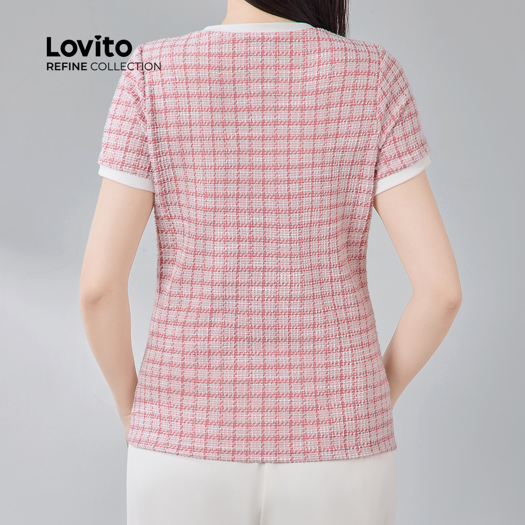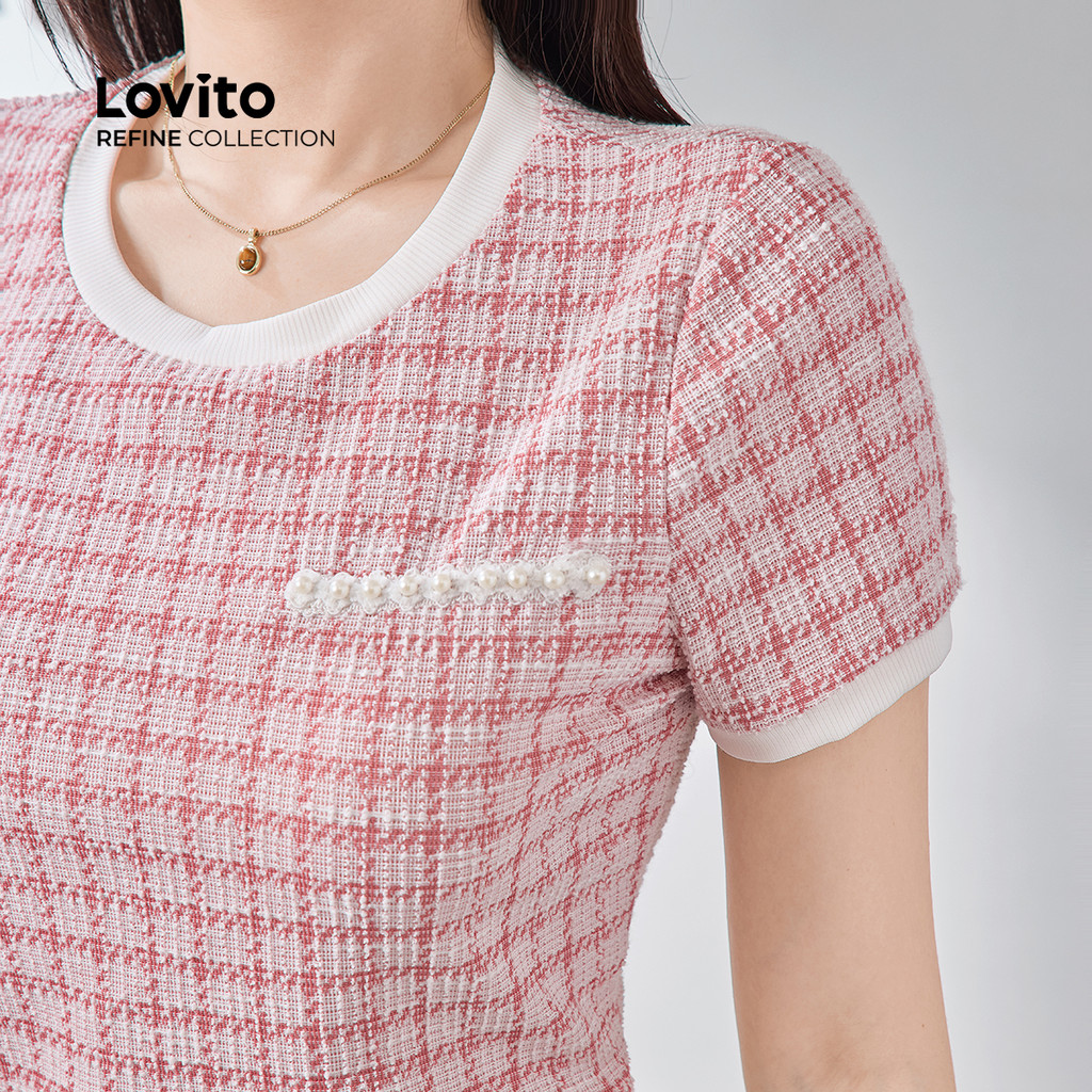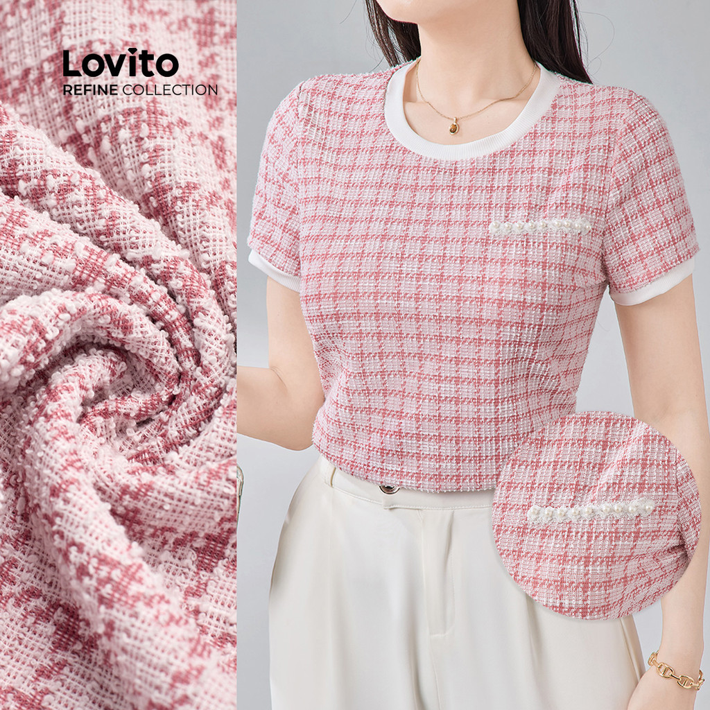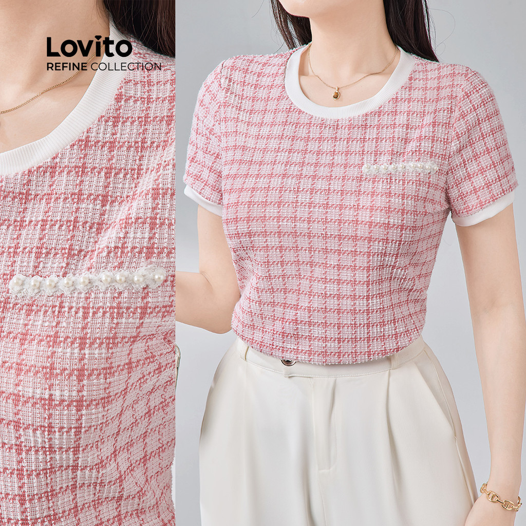 Lovito Refine Blusa Elegante Costurada com Pérolas em Tecido Colorblock para Primavera/Verão LR13E006