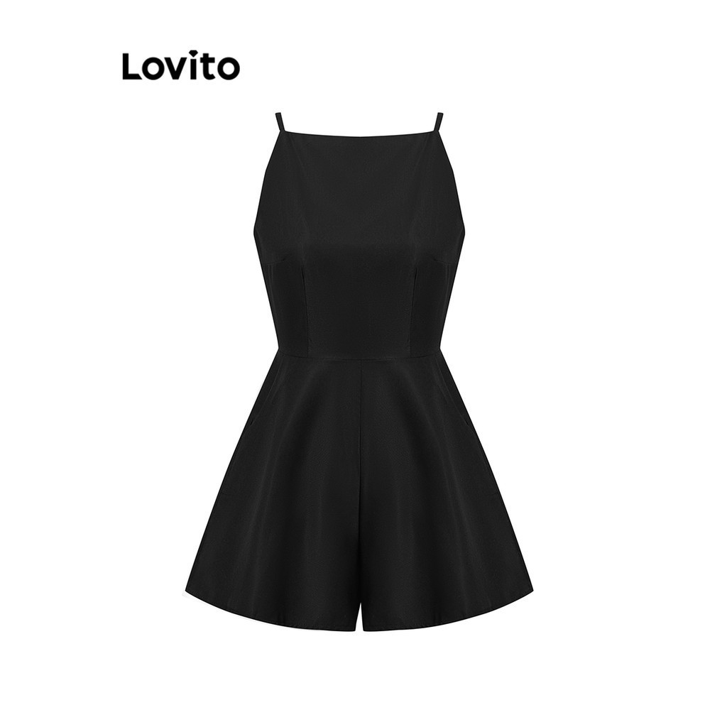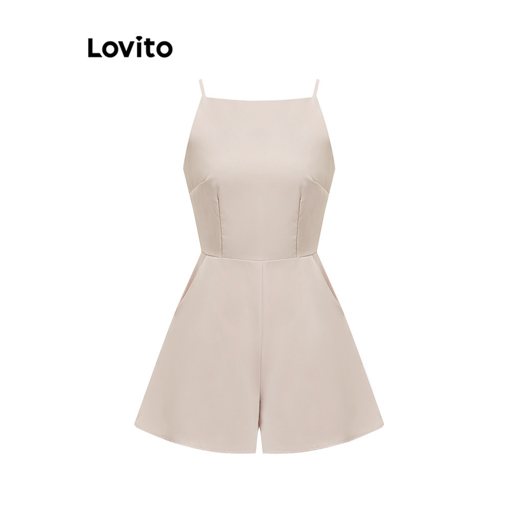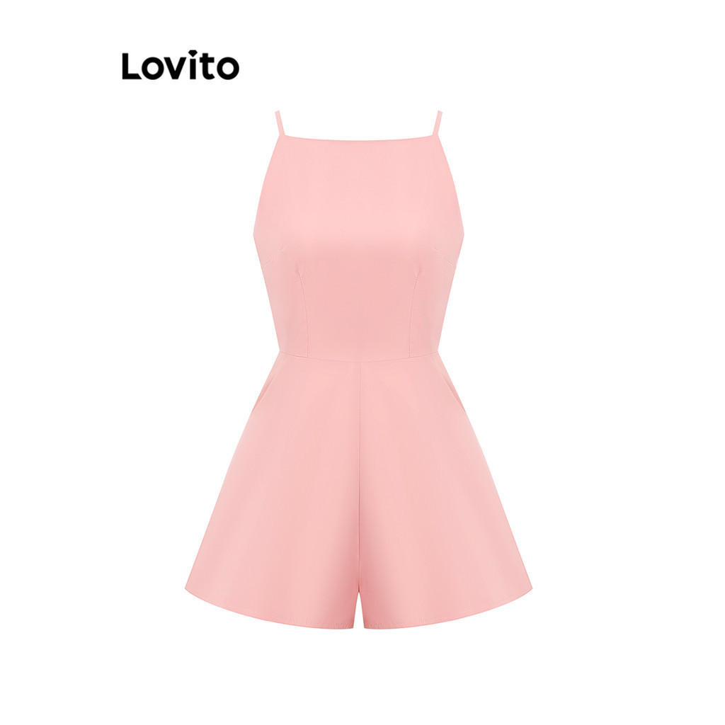 Lovito Macacão Feminino Casual Plissado Liso L80ED343 (Multicolorido)