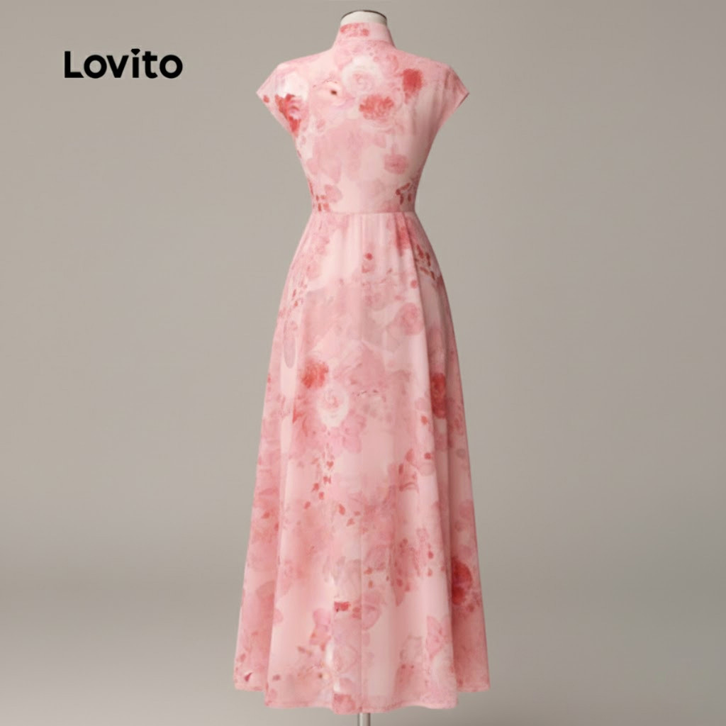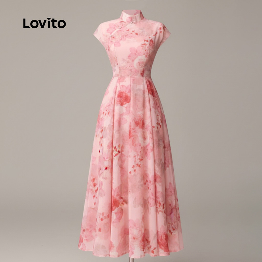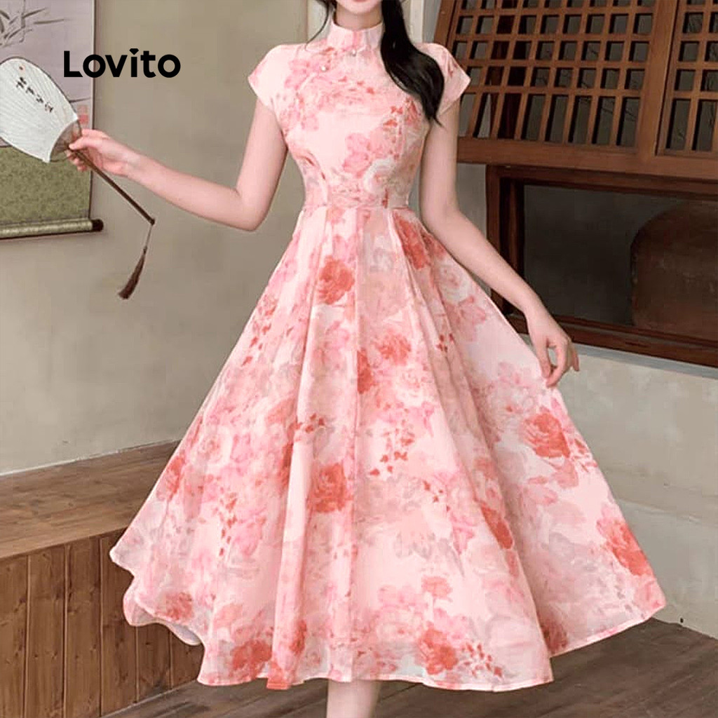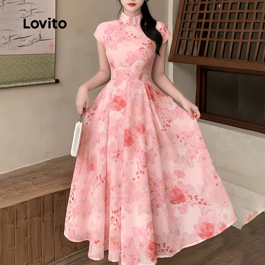 Lovito Vestido Casual Estilo Chinês Rosa Para Mulheres Ideal Para a Primavera/verão LK2ED007