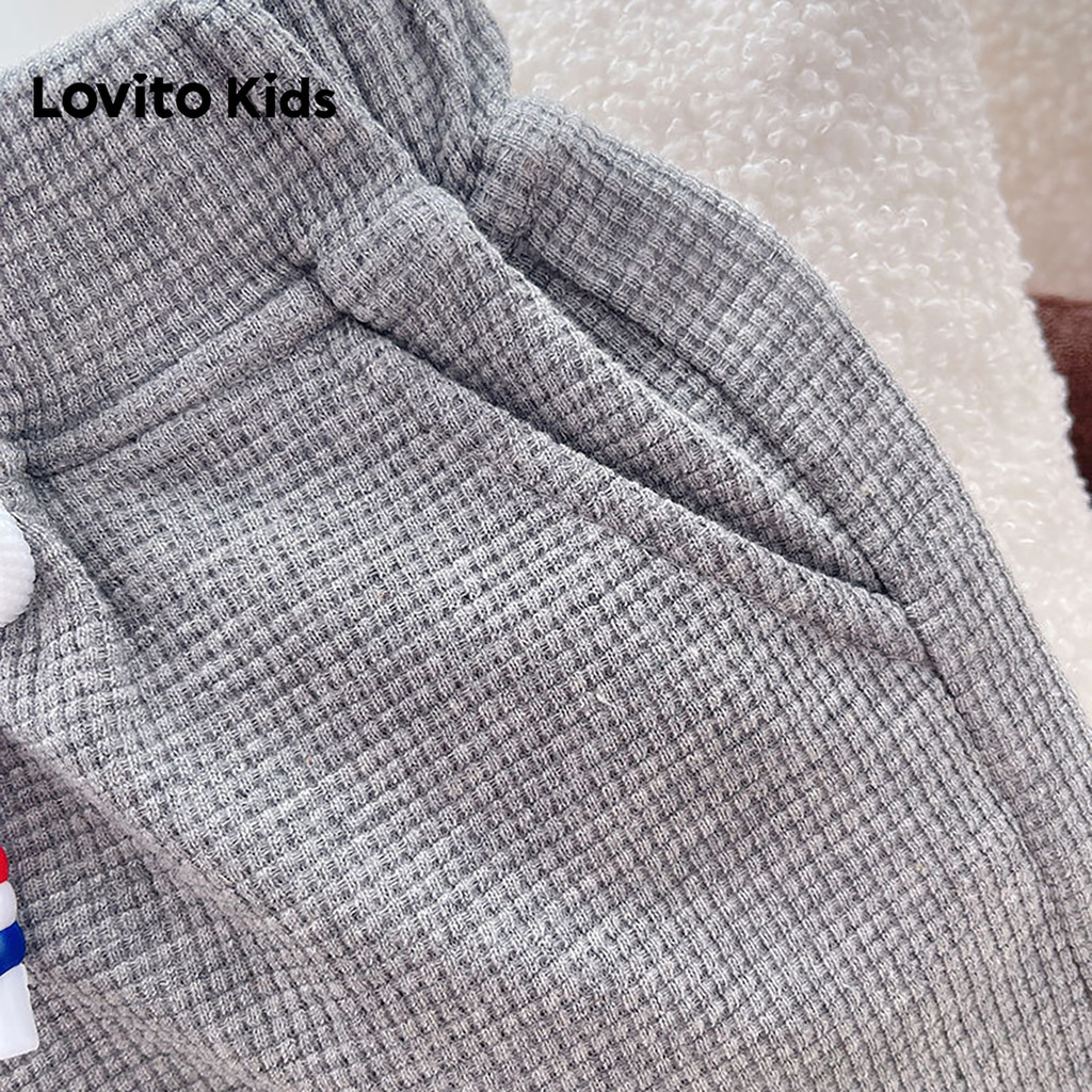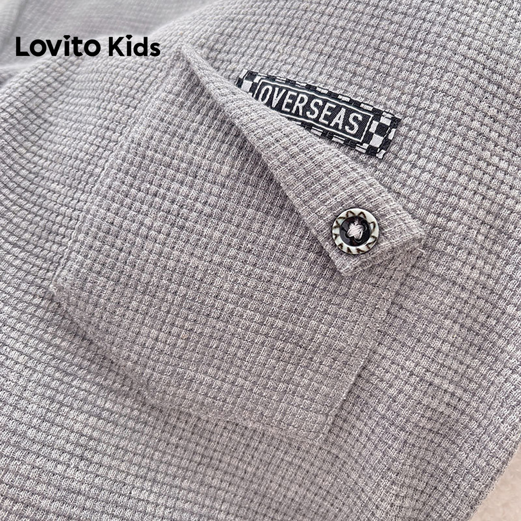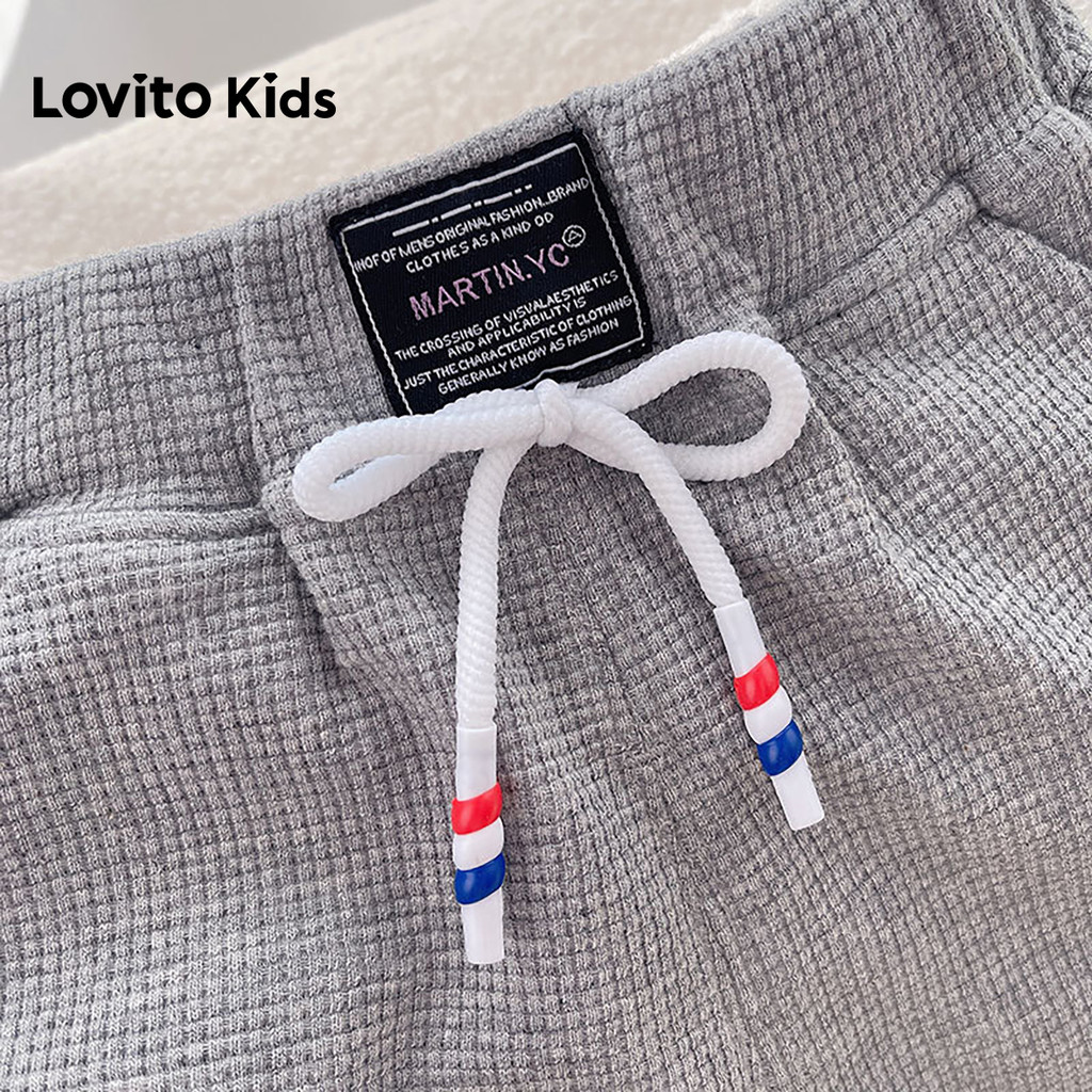Lovito Kids Cordão e Botão para Moeda Primavera/verão, Shorts Cinzentos para Meninos. LNL136373