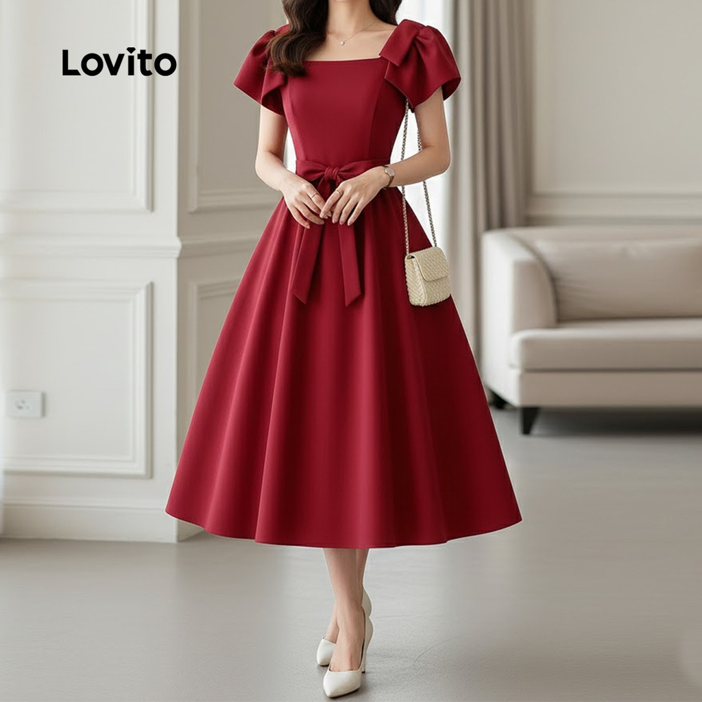 Lovito Vestido Elegante Chinês Cheongsam Qipao Amarração Costas Vermelho Primavera/verão Para Mulheres L157ED436