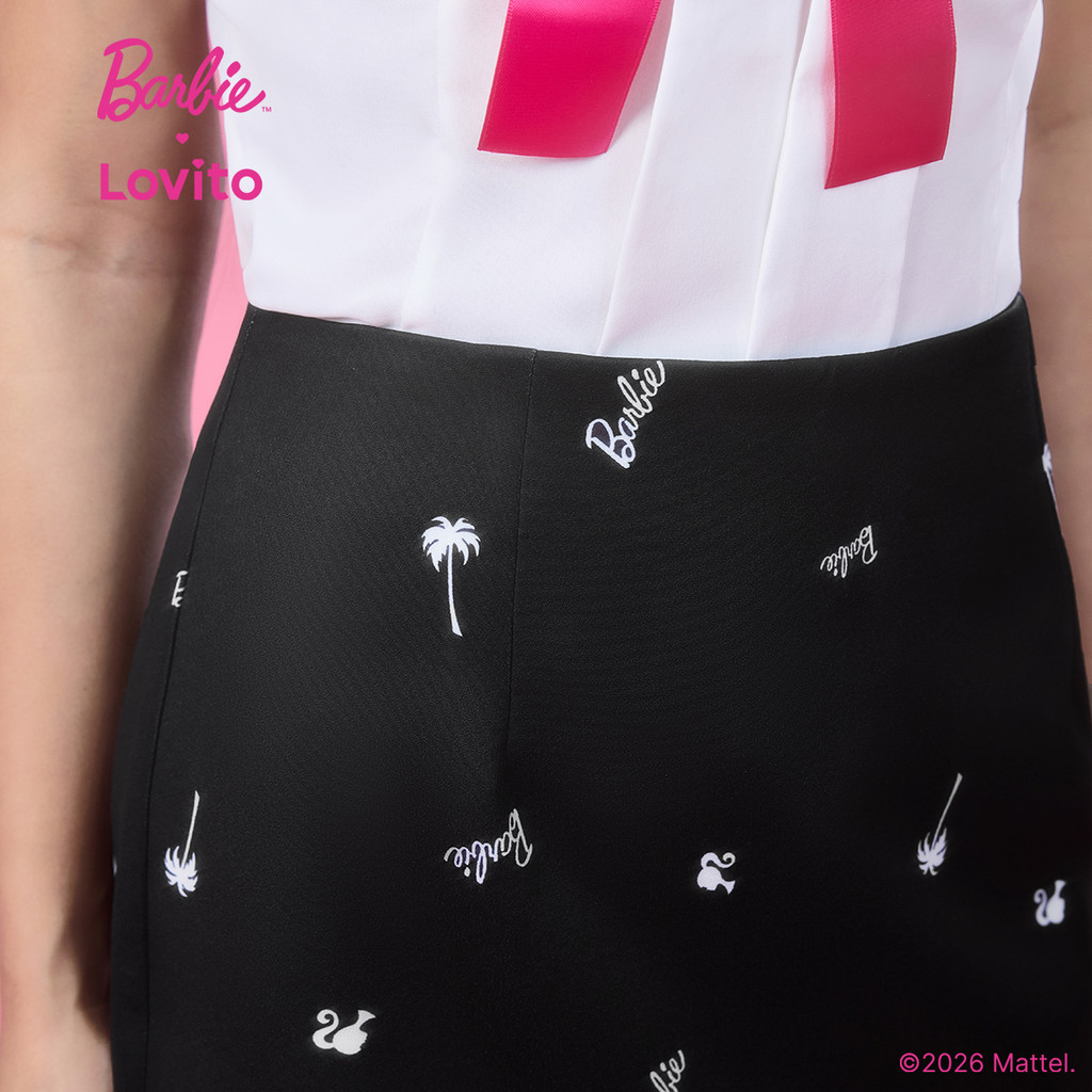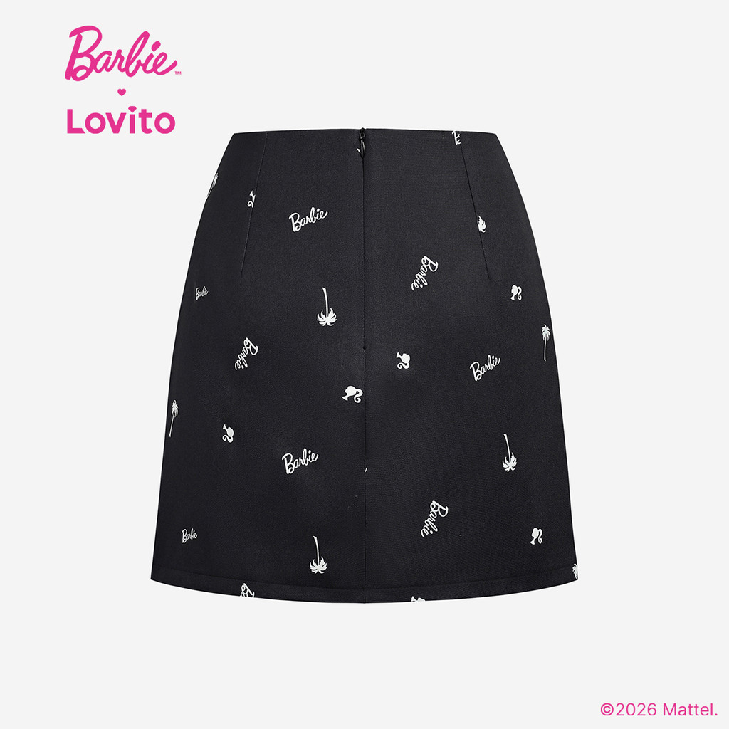Barbie™ X Lovito Saias Casuais Primavera/verão Saias Pretas para mulheres LB1AD048