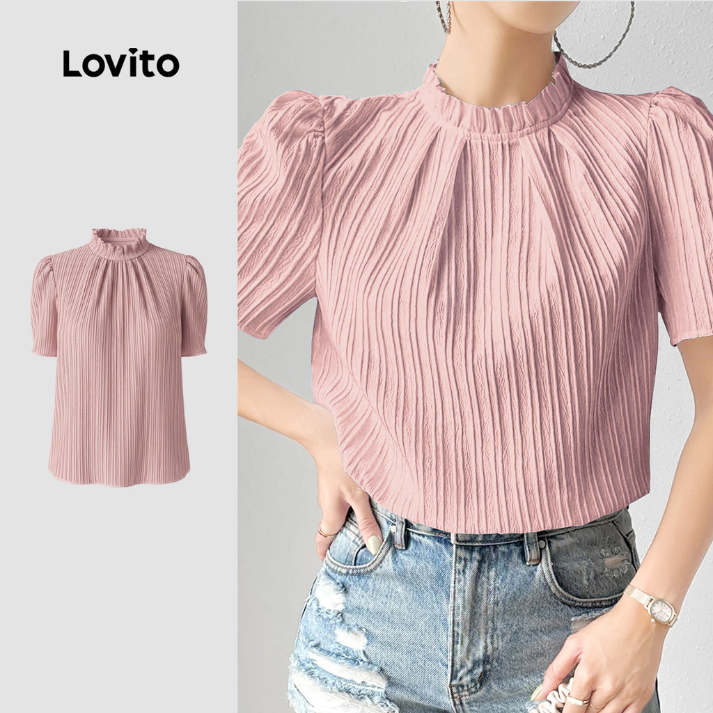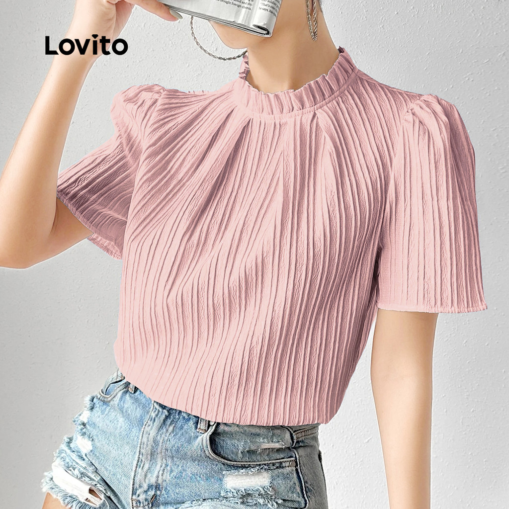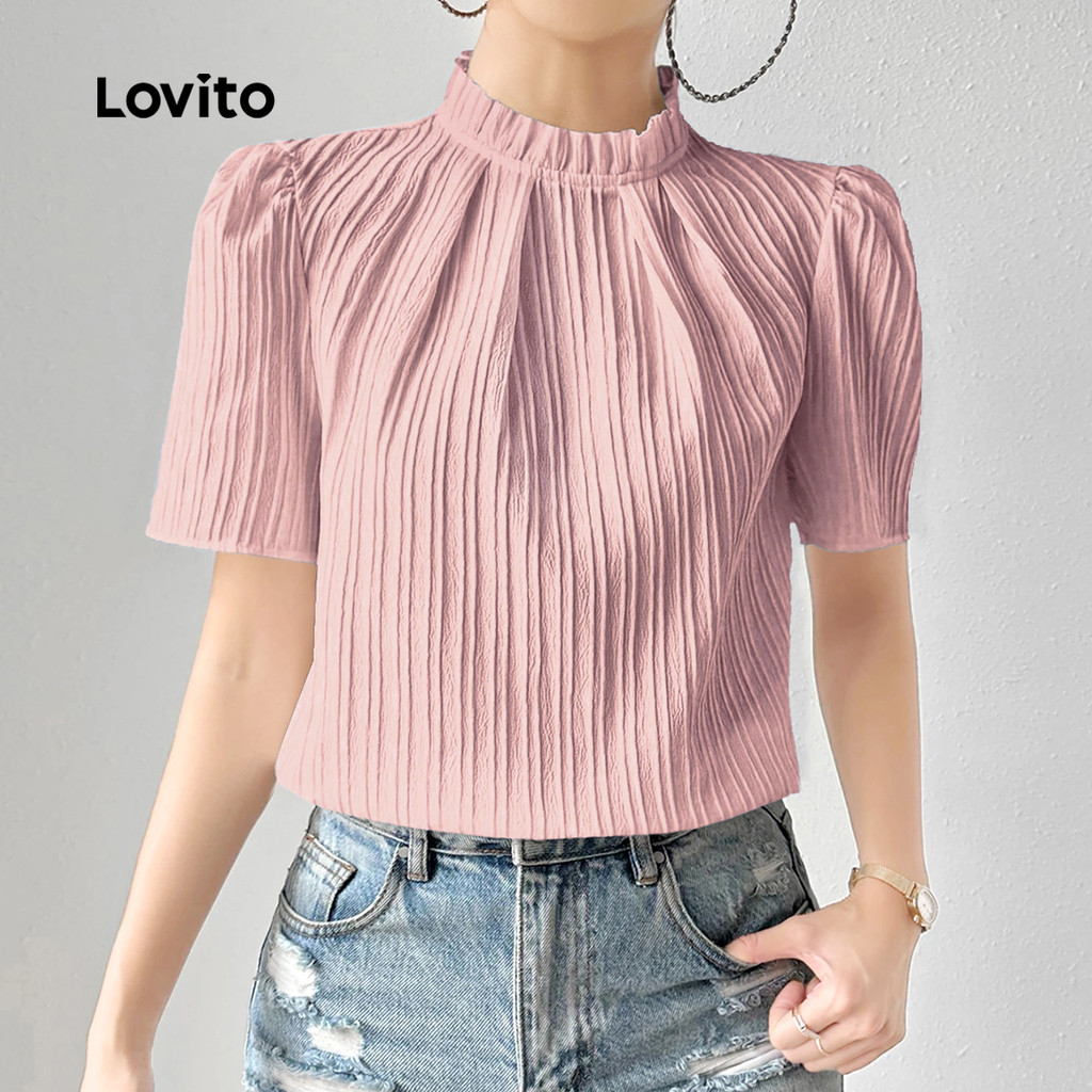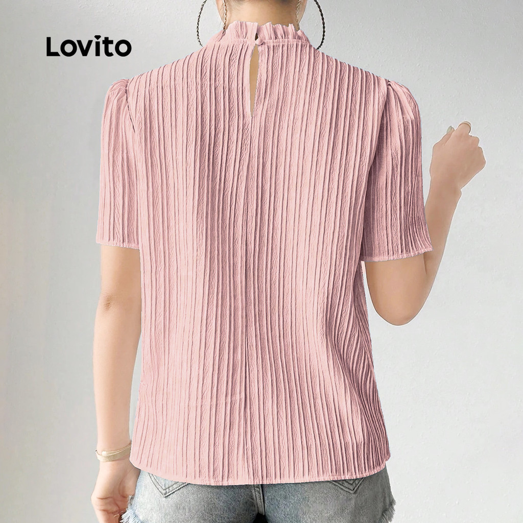 Lovito Blusa Casual plissada primavera/verão blusa rosa para mulheres LK3ED017