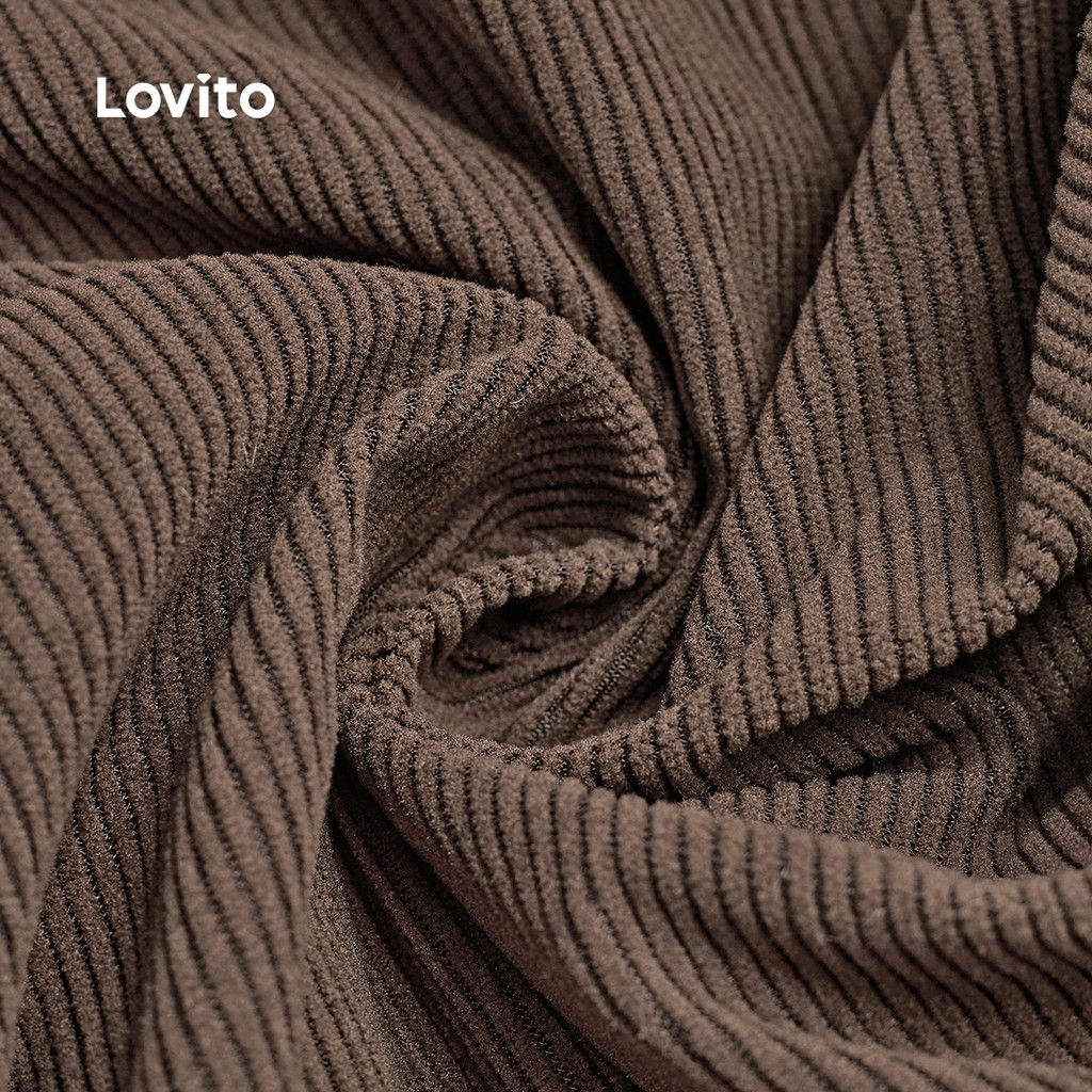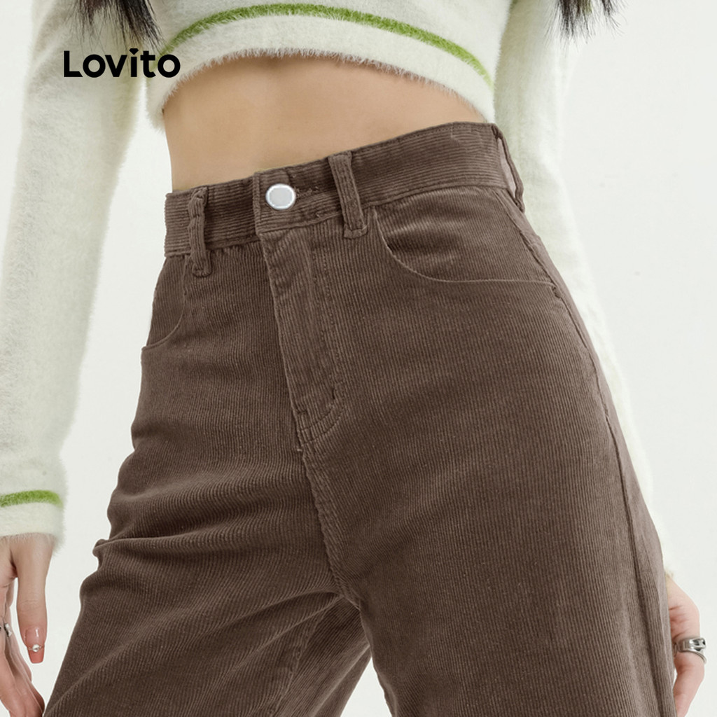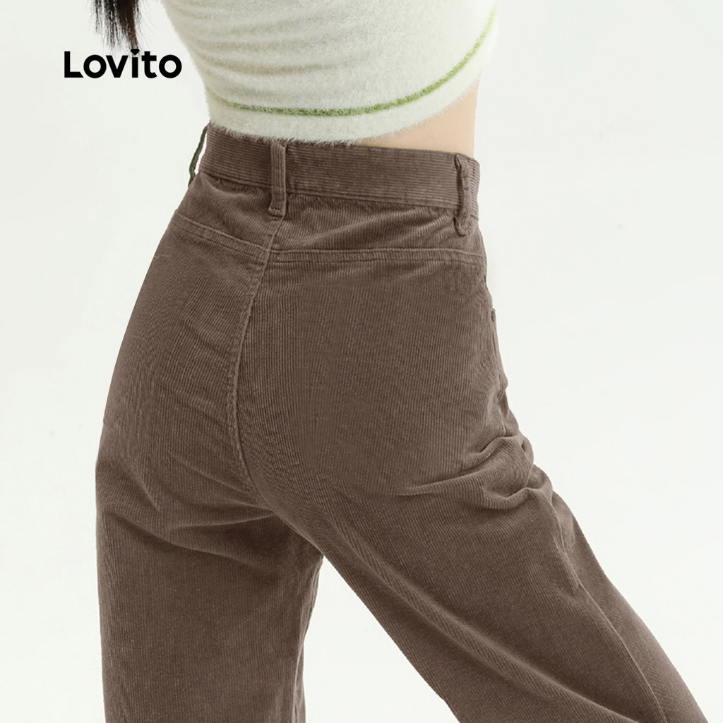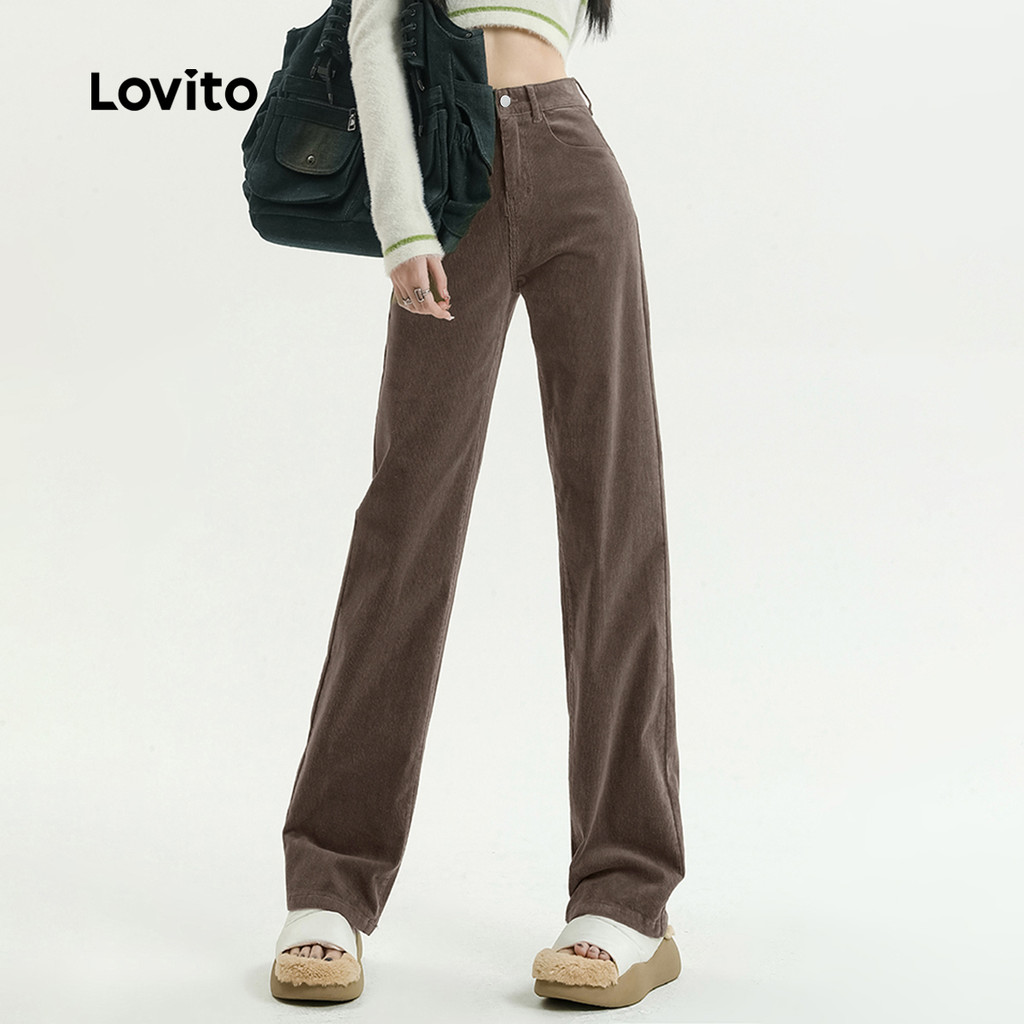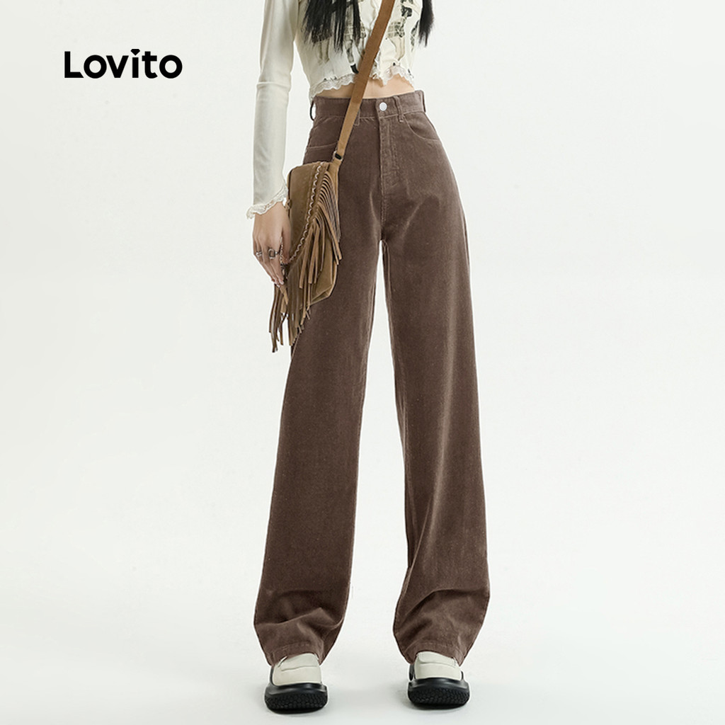 Lovito Calças Casuais com Botão Drapeadas Outono/inverno Calças Marrom para Mulheres L159AD111