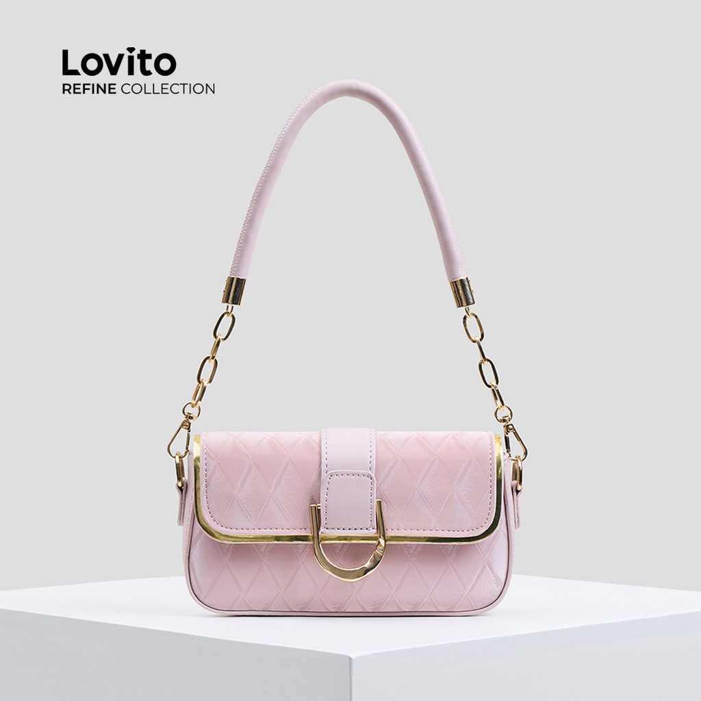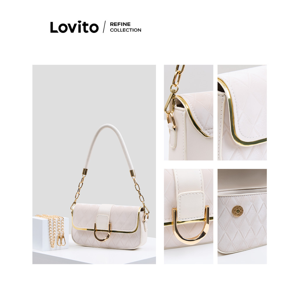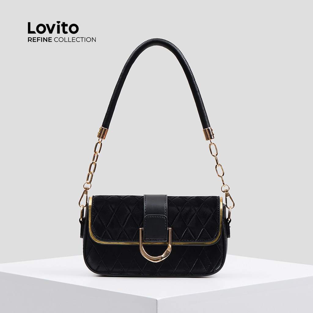 (Bags) Lovito Refine Elegante couro cor axilas S corrente Metal pequena bolsa de ombro para mulher LFAR6076