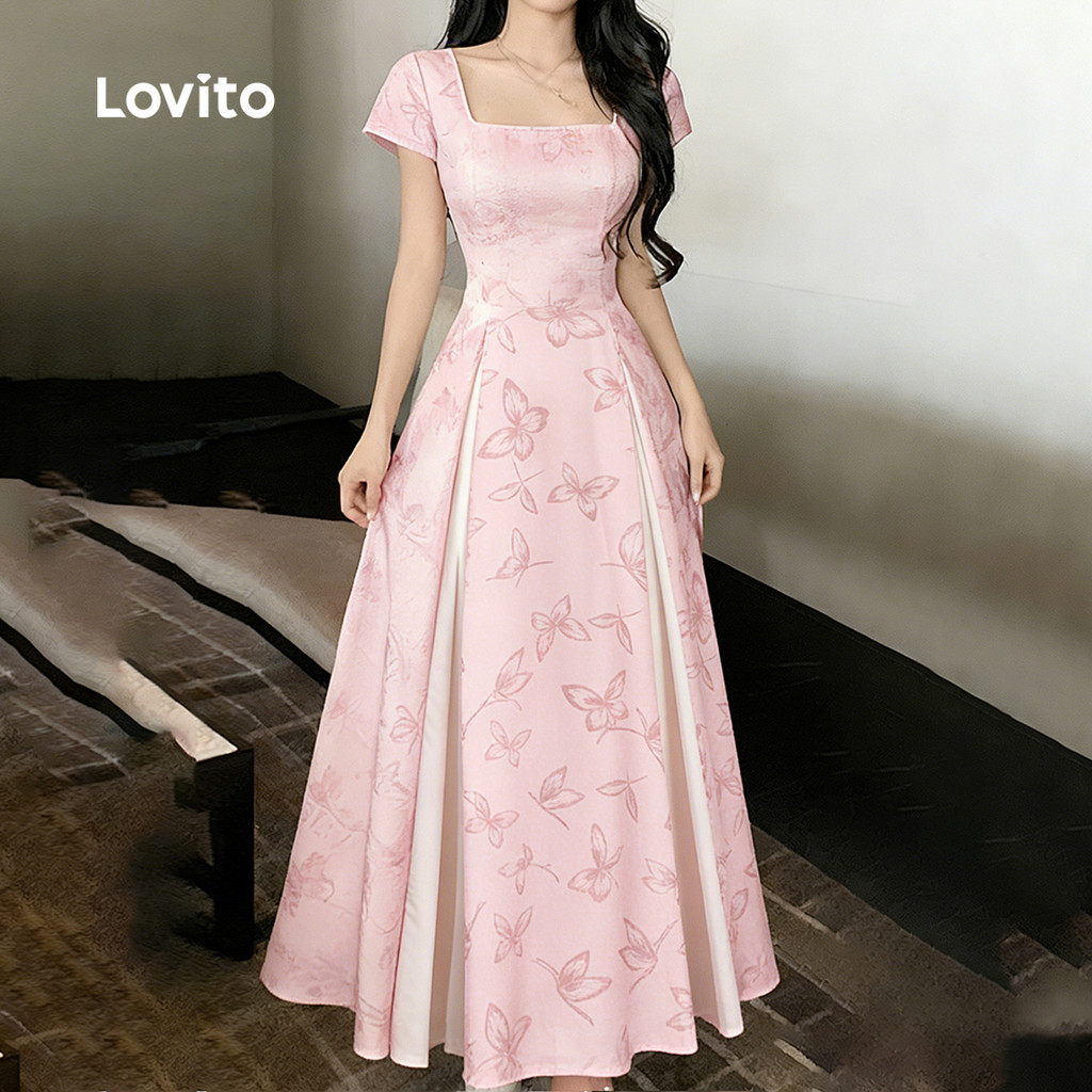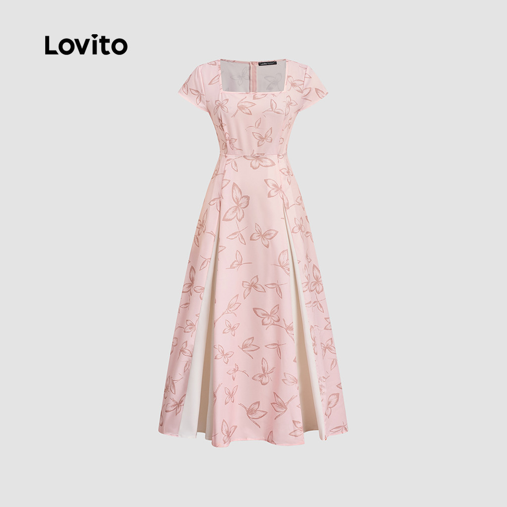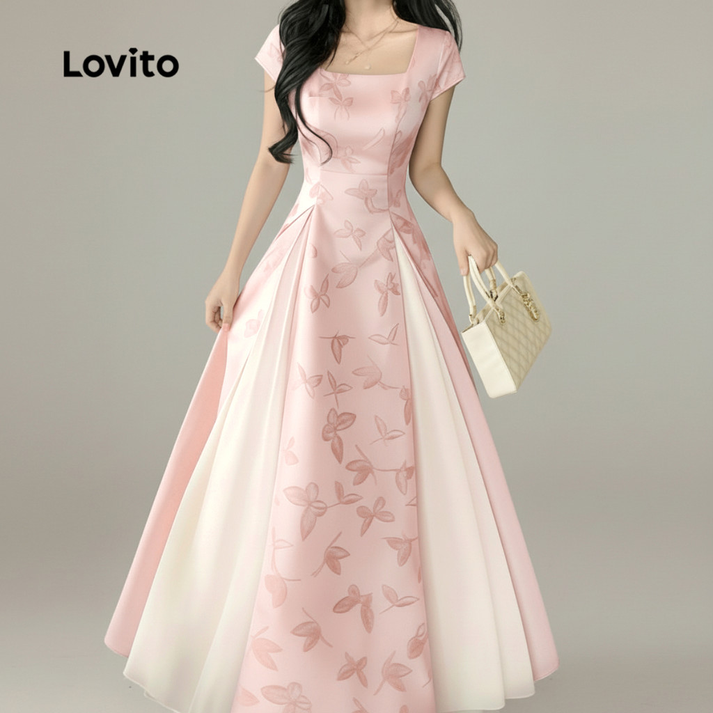Lovito Vestido Boho Colorblock Primavera/verão Rosa para Mulheres LK2ED163