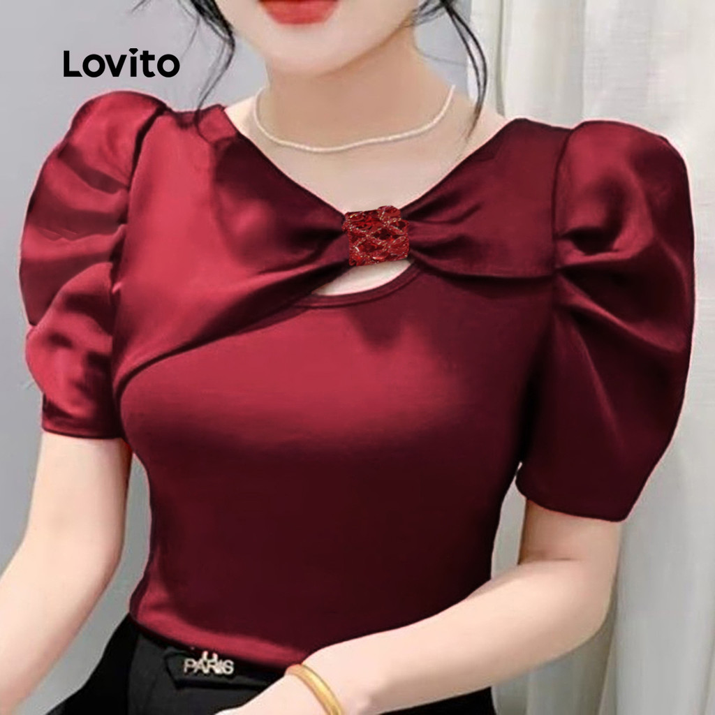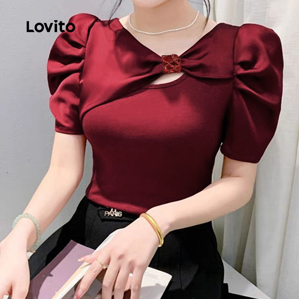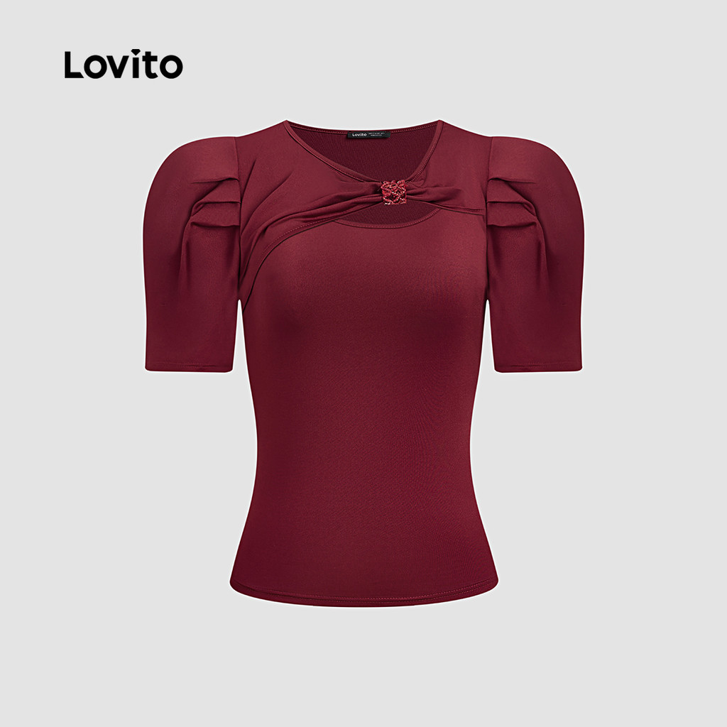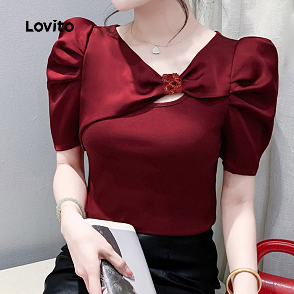Lovito Blusa Casual De Festa Vermelha Com Recortes Blusa Bordô Para Primavera/verão Feminina LK2ED068