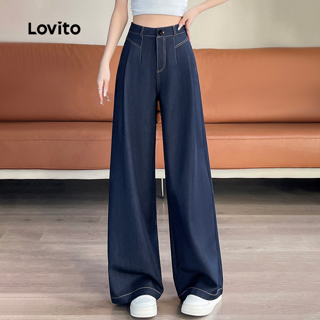 Lovito Calça Feminina com Modelagem Estruturada e Textura Macia Calça Azul Escuro para Todas as Estações LBL26017