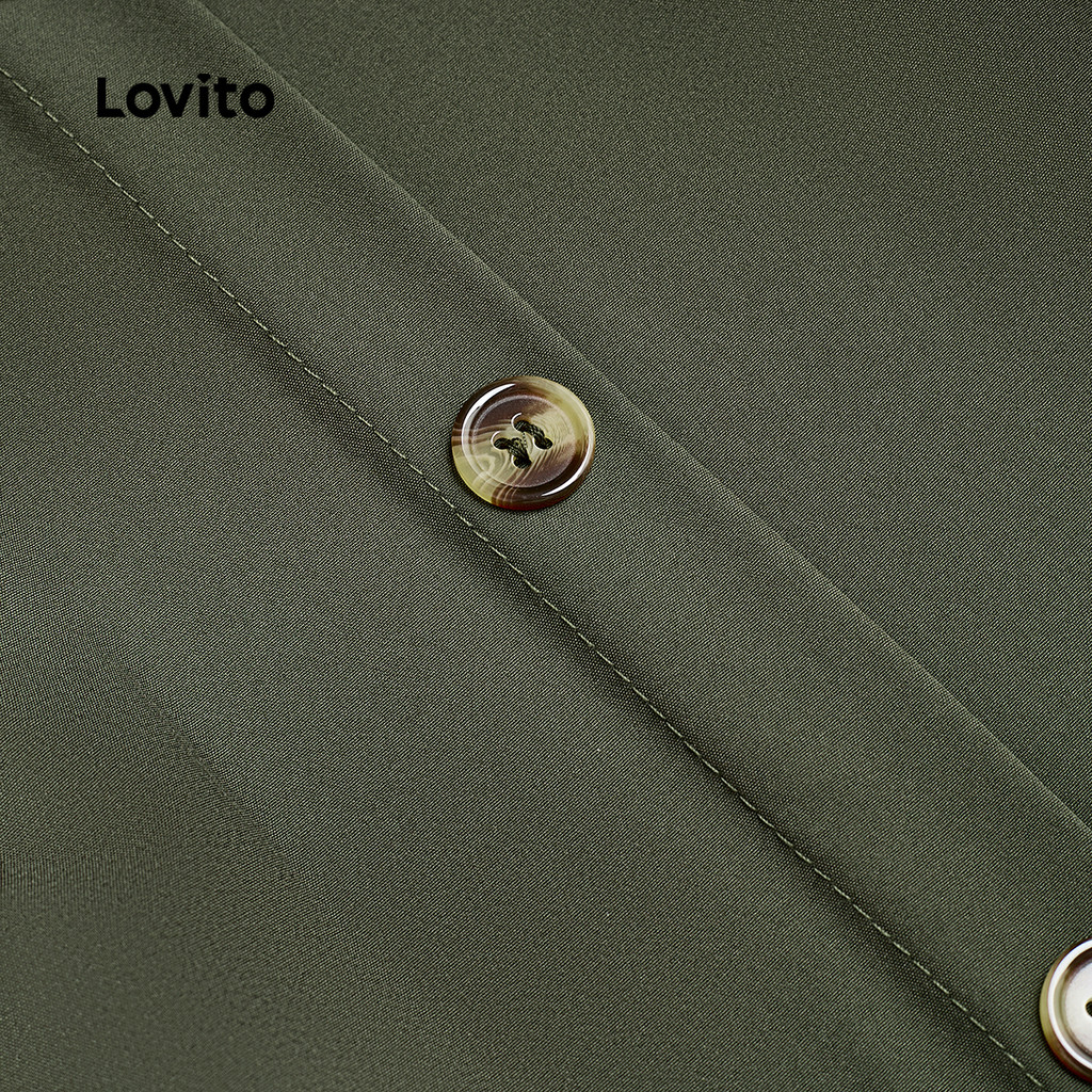 Lovito Vestido Casual de Zíper com Cinto para Primavera/verão Verde para mulheres L157LD063
