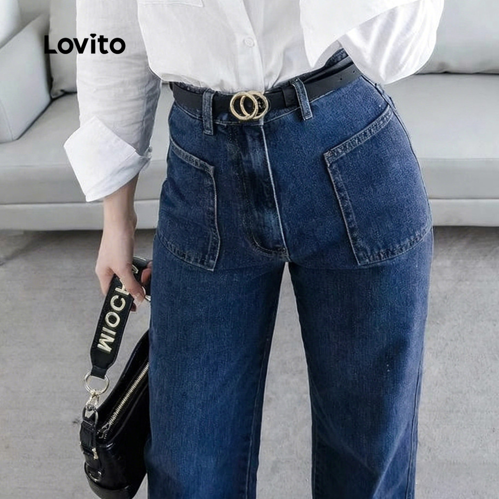 Lovito Jeans Elegantes Lavados Clássicos e Versáteis Jeans Cinza Azul para Mulheres Da Primavera/Verão LK2ED1350