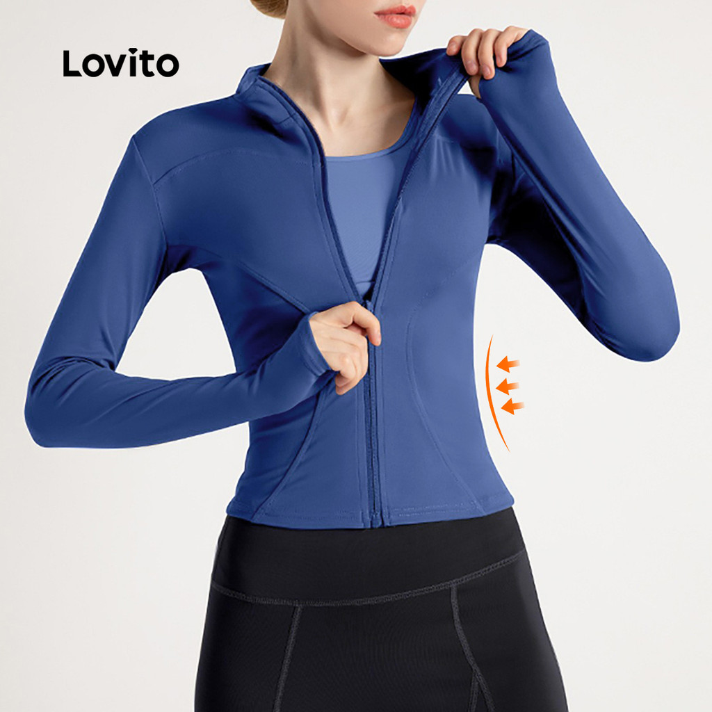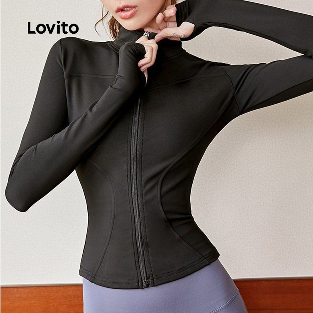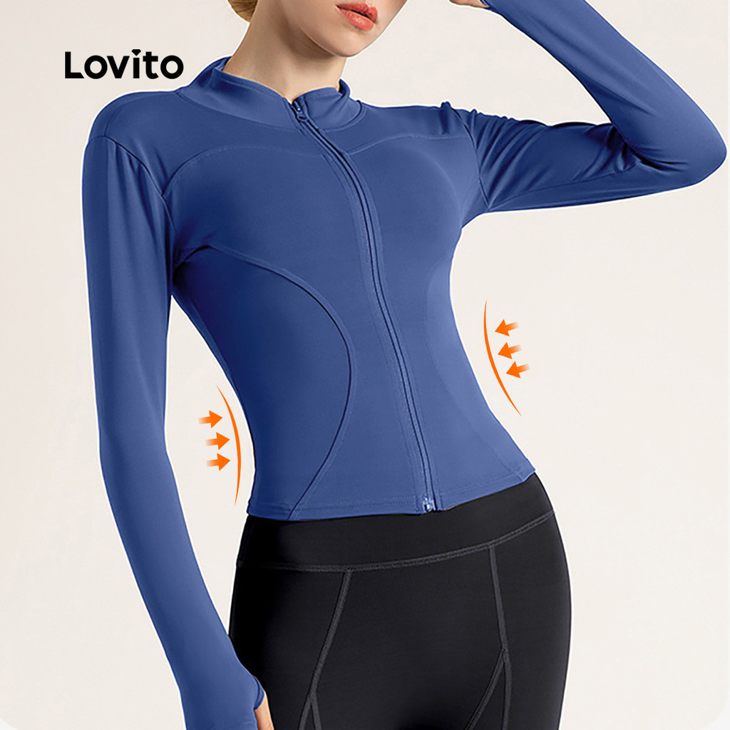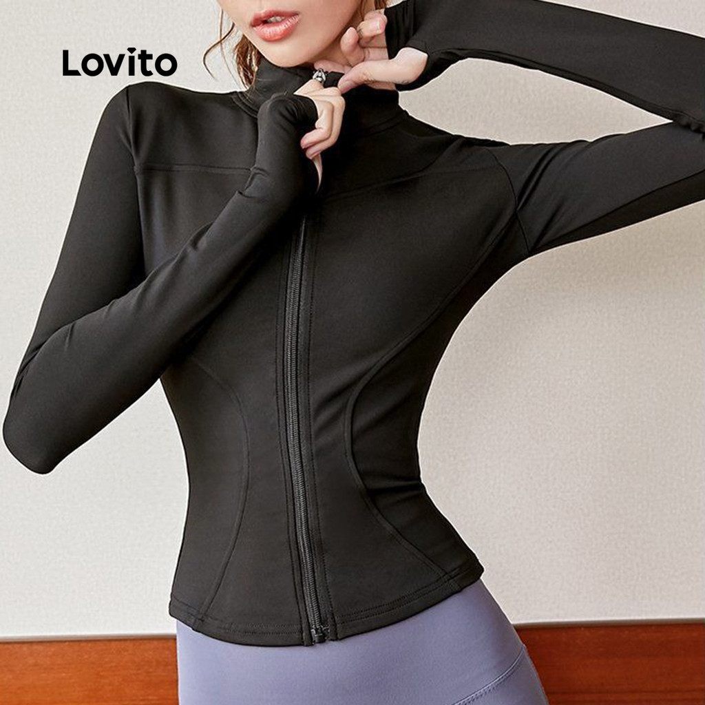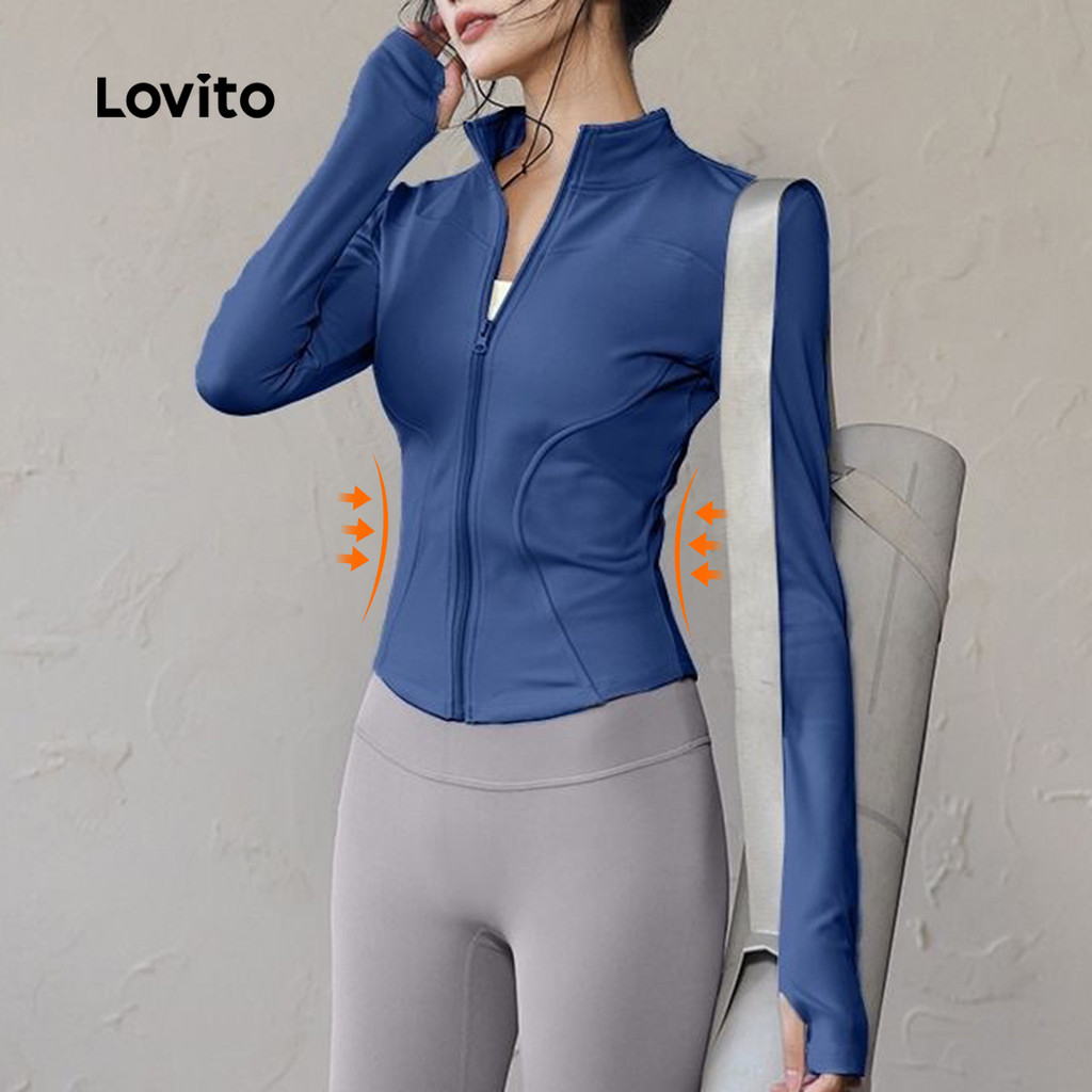 Lovito Jaqueta Esportiva para Mulheres Controle de Barriga Fitness Corrida Yoga LNA109025