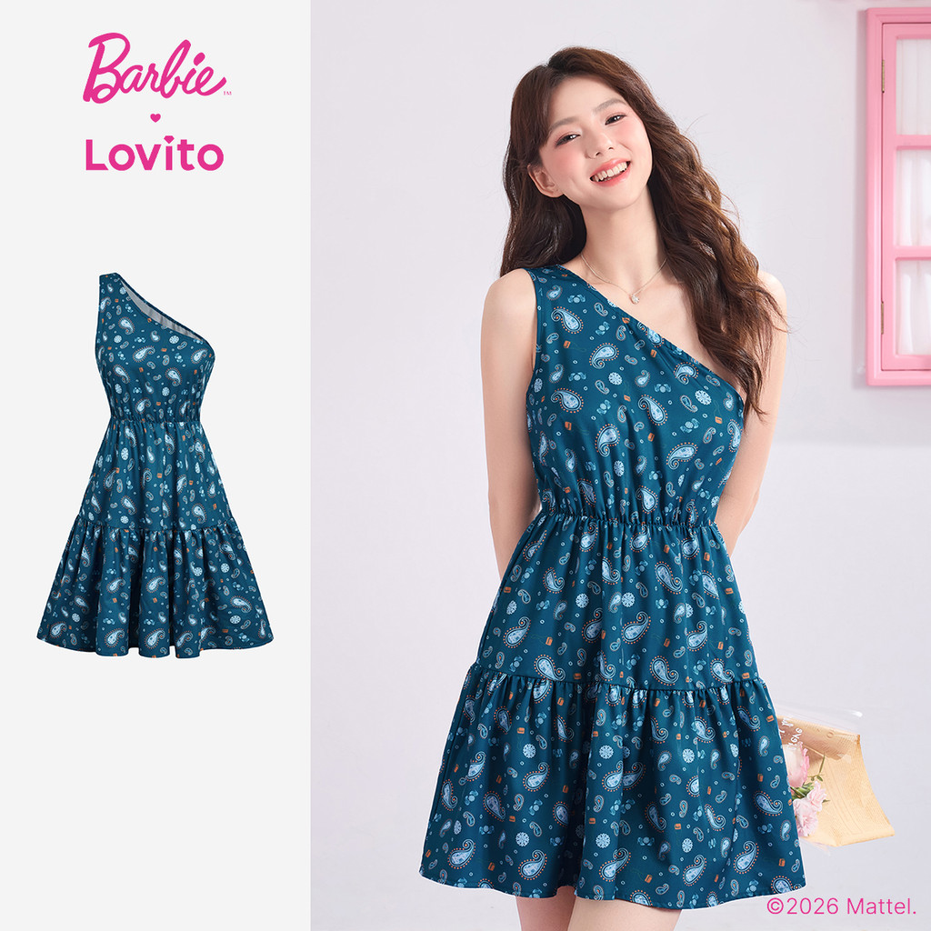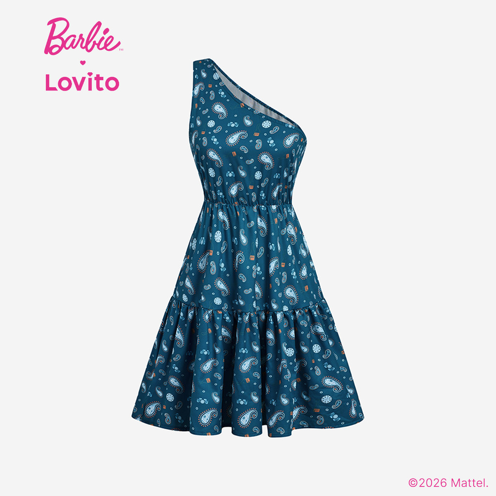 (New arrival) Barbie™ X Lovito Vestido Casual Babados Bainha Assimétrica Primavera/Verão Mulheres DRBL3PAD036
