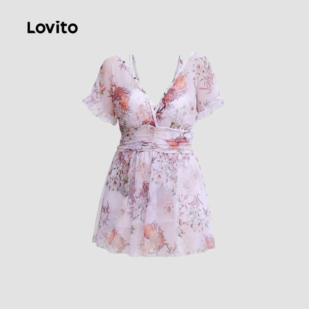 Lovito Maiô Boho de Uma Peça Maiô Falso 2 em 1 para Primavera/verão para Mulheres LNE130063