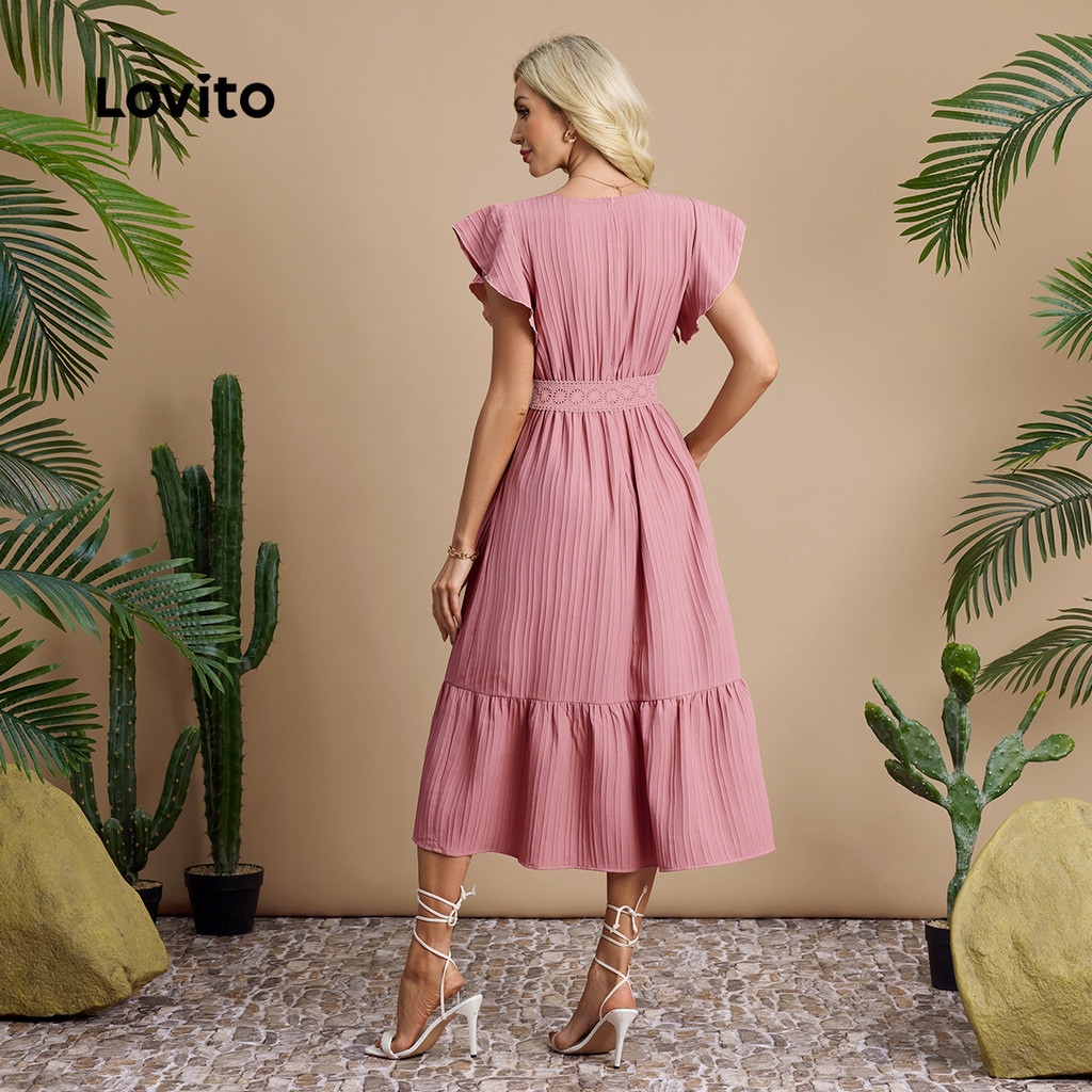 Lovito Vestido Elegante de Renda com Babados Primavera/verão Vestido Rosa para Mulheres LBL30102