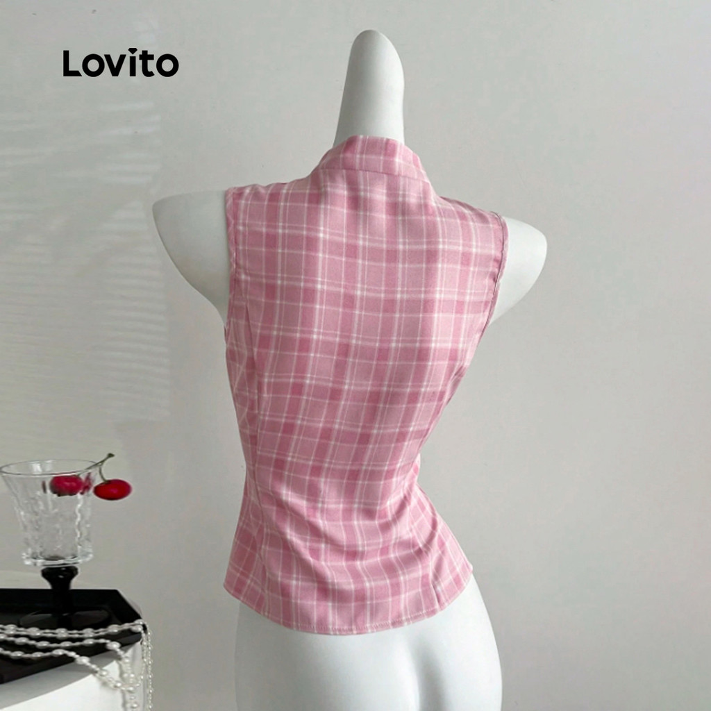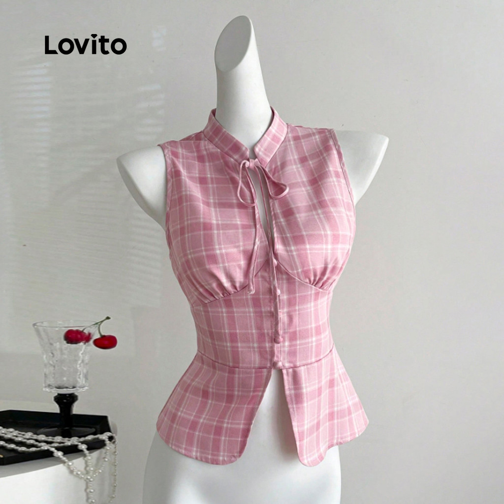 Lovito Casual Top Bow Button Primavera/verão Rosa Top para mulheres LK2AD457
